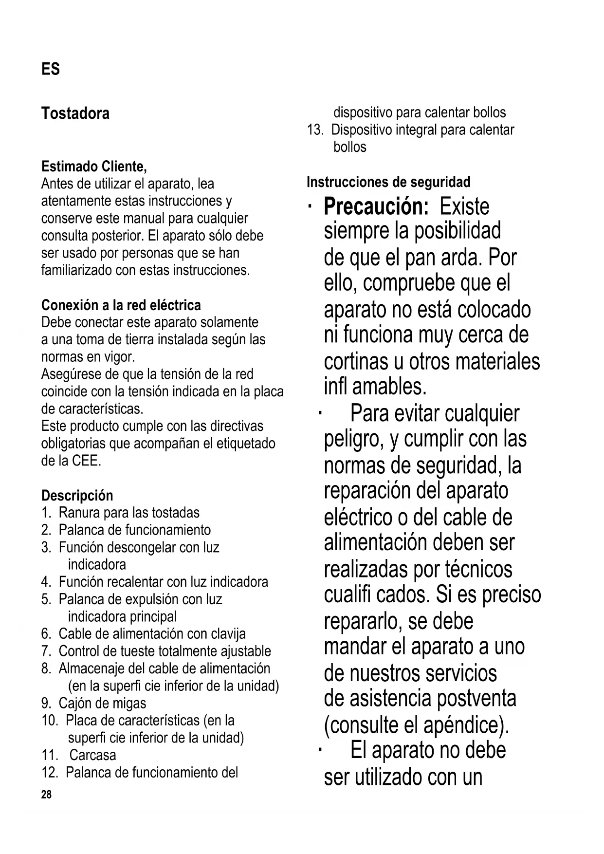 eléctricas, no limpiar el tostador con