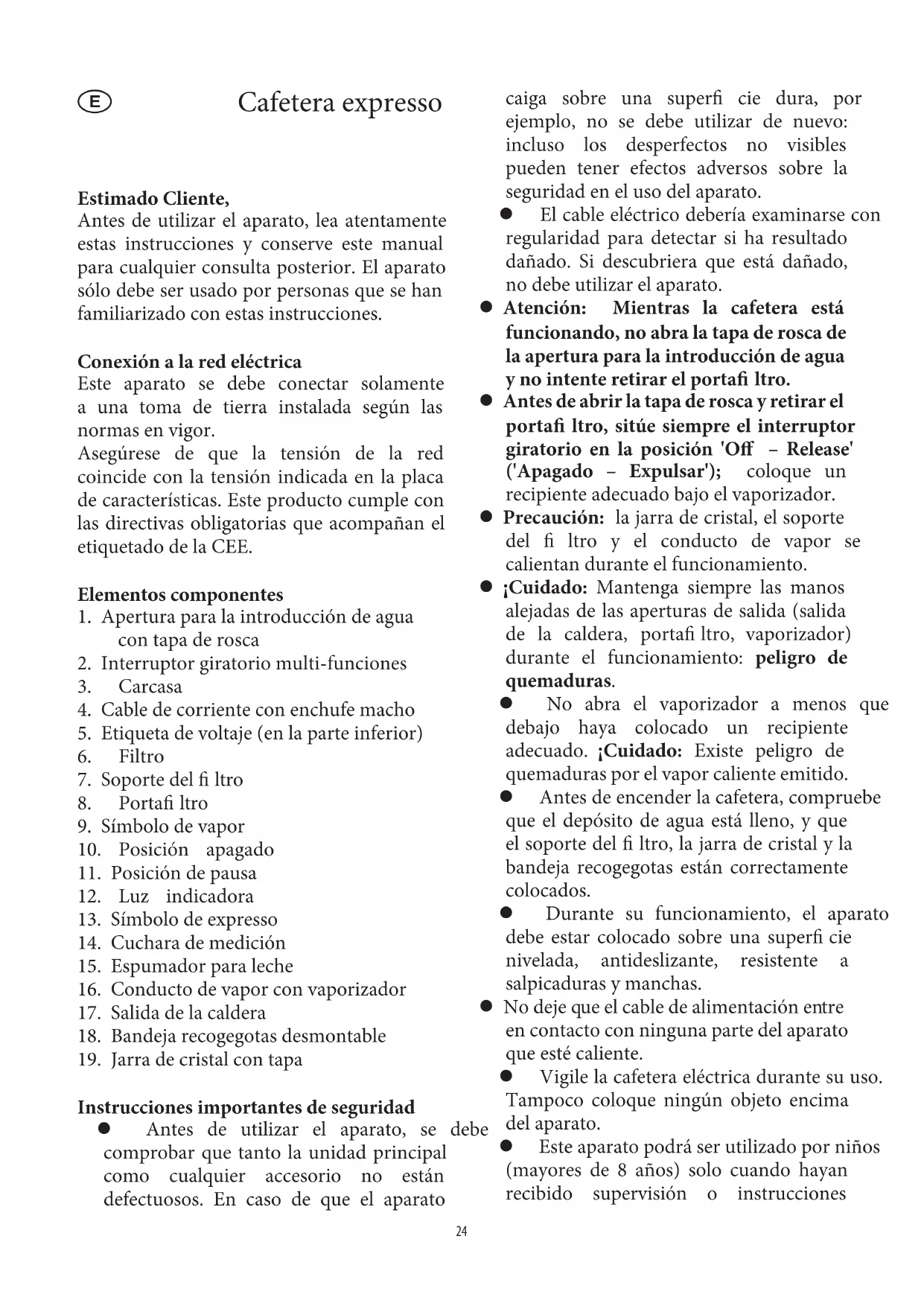 de la caldera, porta ltro, vaporizador)