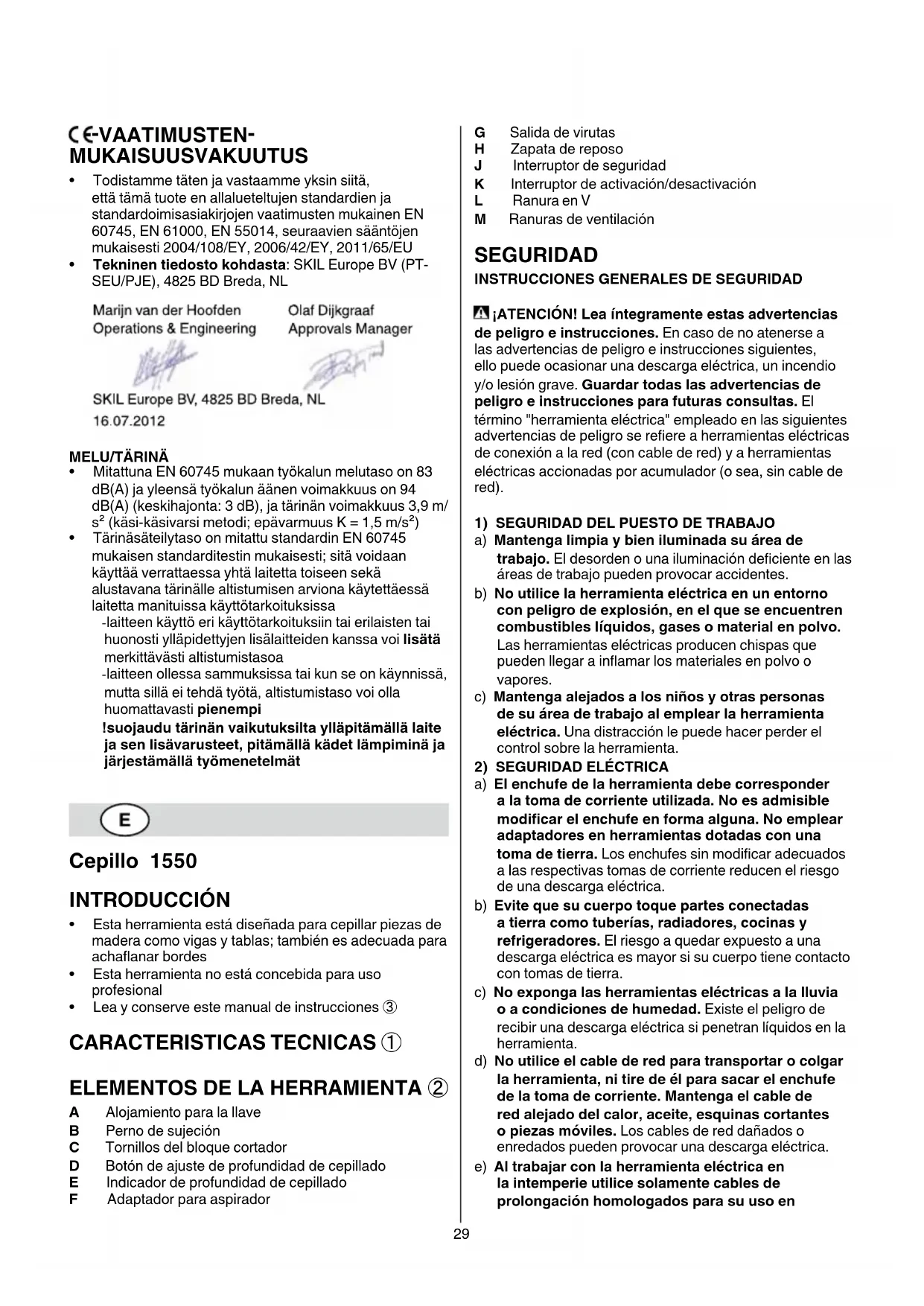 MANUAL DE USUARIO 1550 AA SKIL
