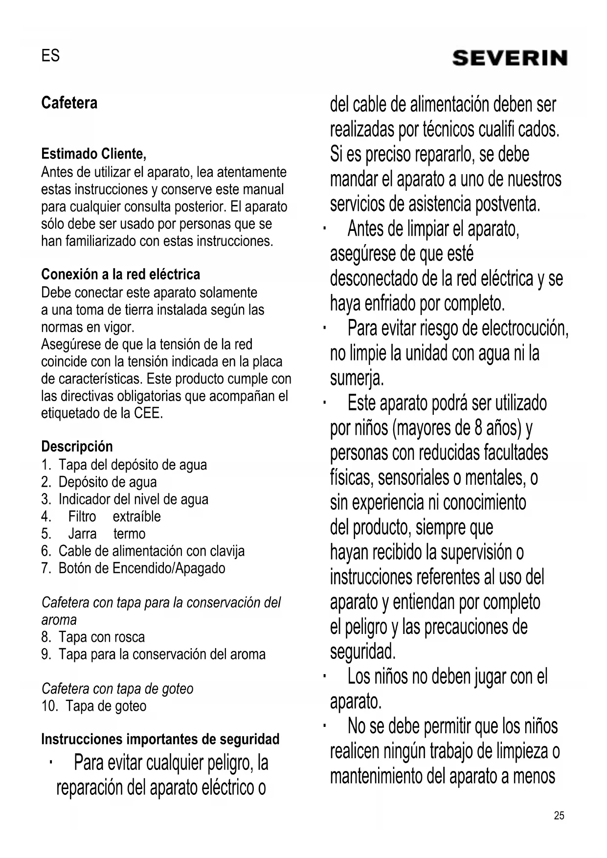 KA 4118 - Maquina de cafe SEVERIN - Manual de uso y guía de instrucciones gratis