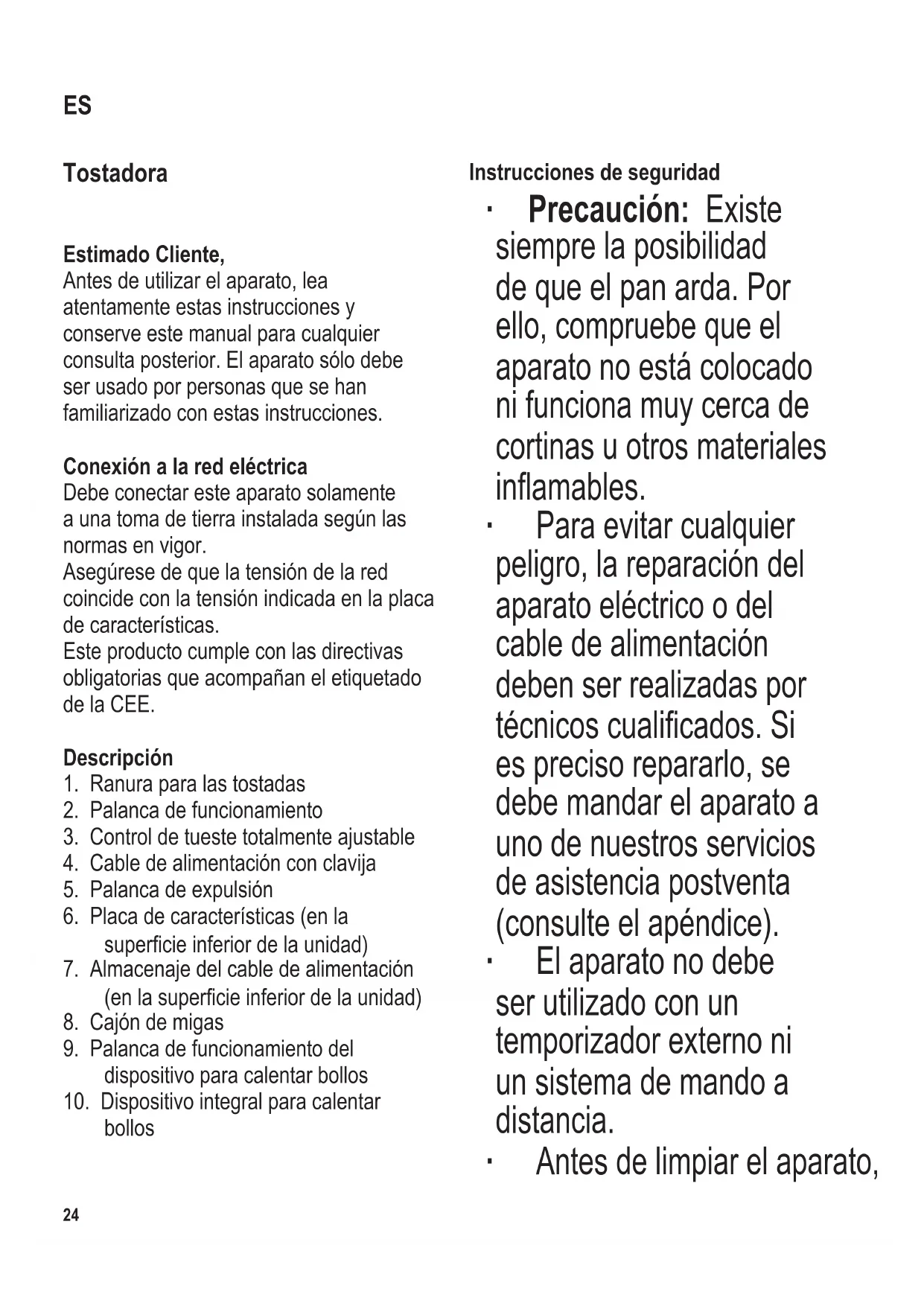 eléctricas, no limpiar el tostador con