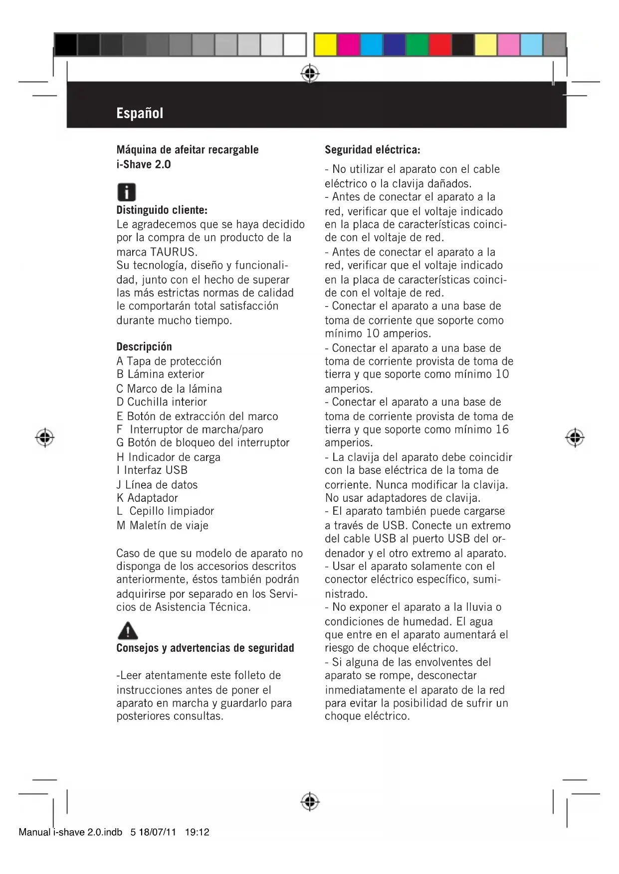 IShave 2.0 - Navaja TAURUS - Manual de uso y guía de instrucciones gratis