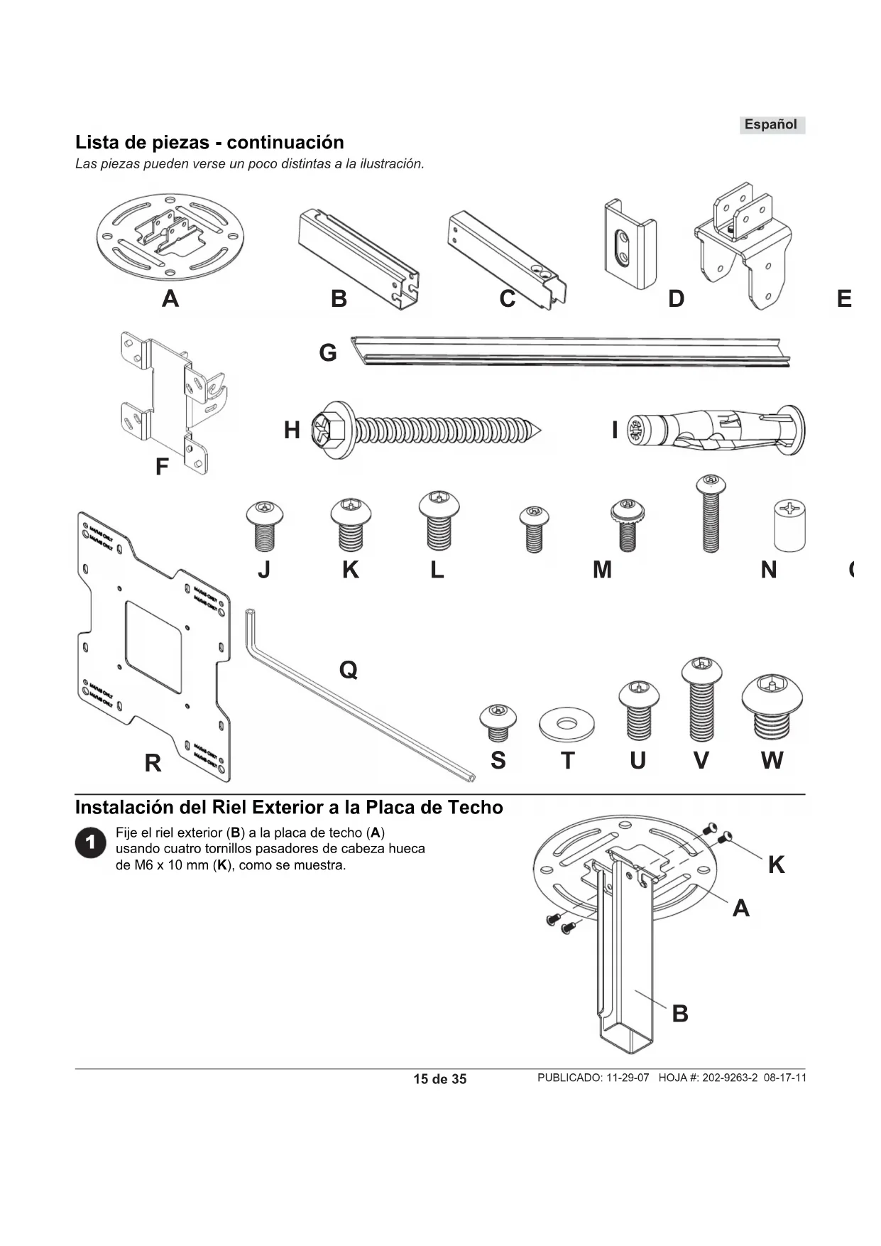Siempre cunde con la aplica de un asistente o utilise un equipo mecnico de izar para levantar y colocar el equipo con mas seguidad. - Apriete los tornillos con firmeza, pero no en excesso. Apretarlos en excesso pueda darar los articulos y pueda disminuir significi cativamente su fuerza de fi jacion.