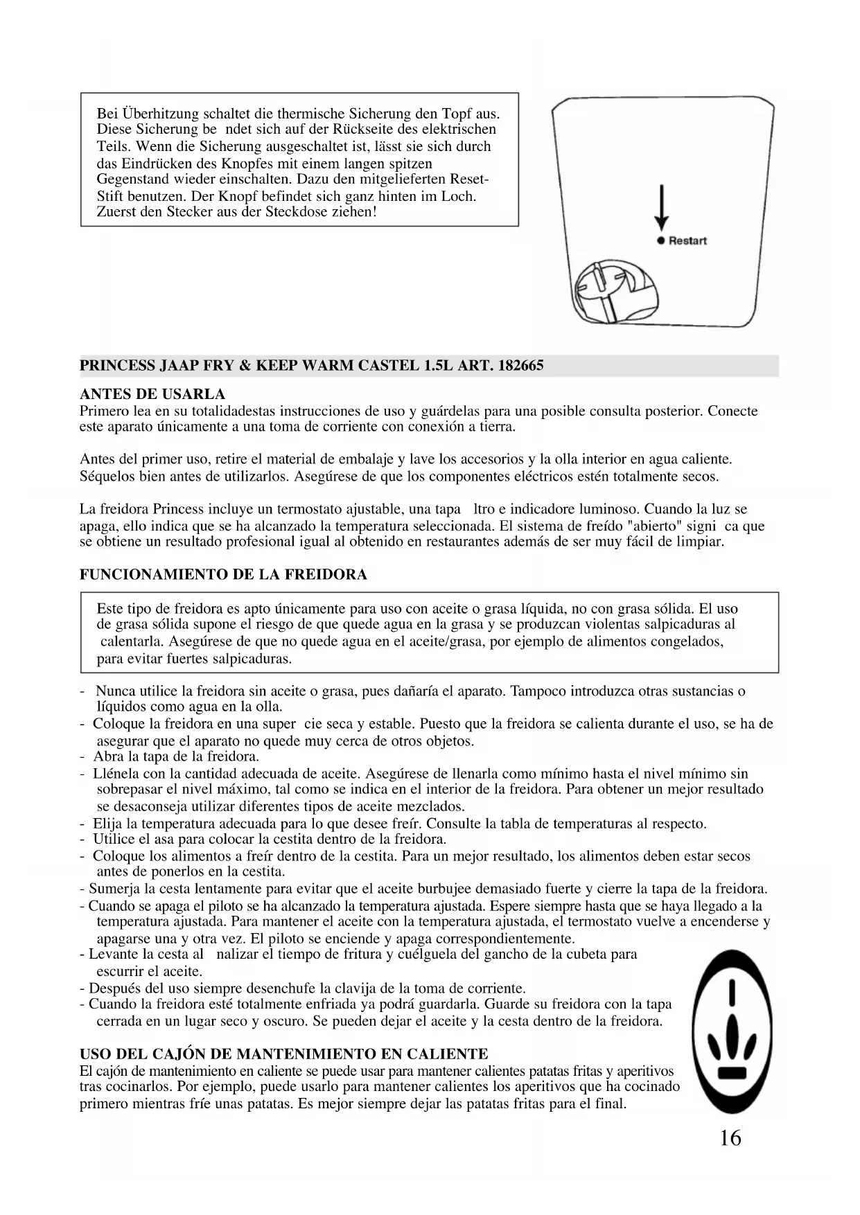 182665 - Freidora PRINCESS - Manual de uso y guía de instrucciones gratis