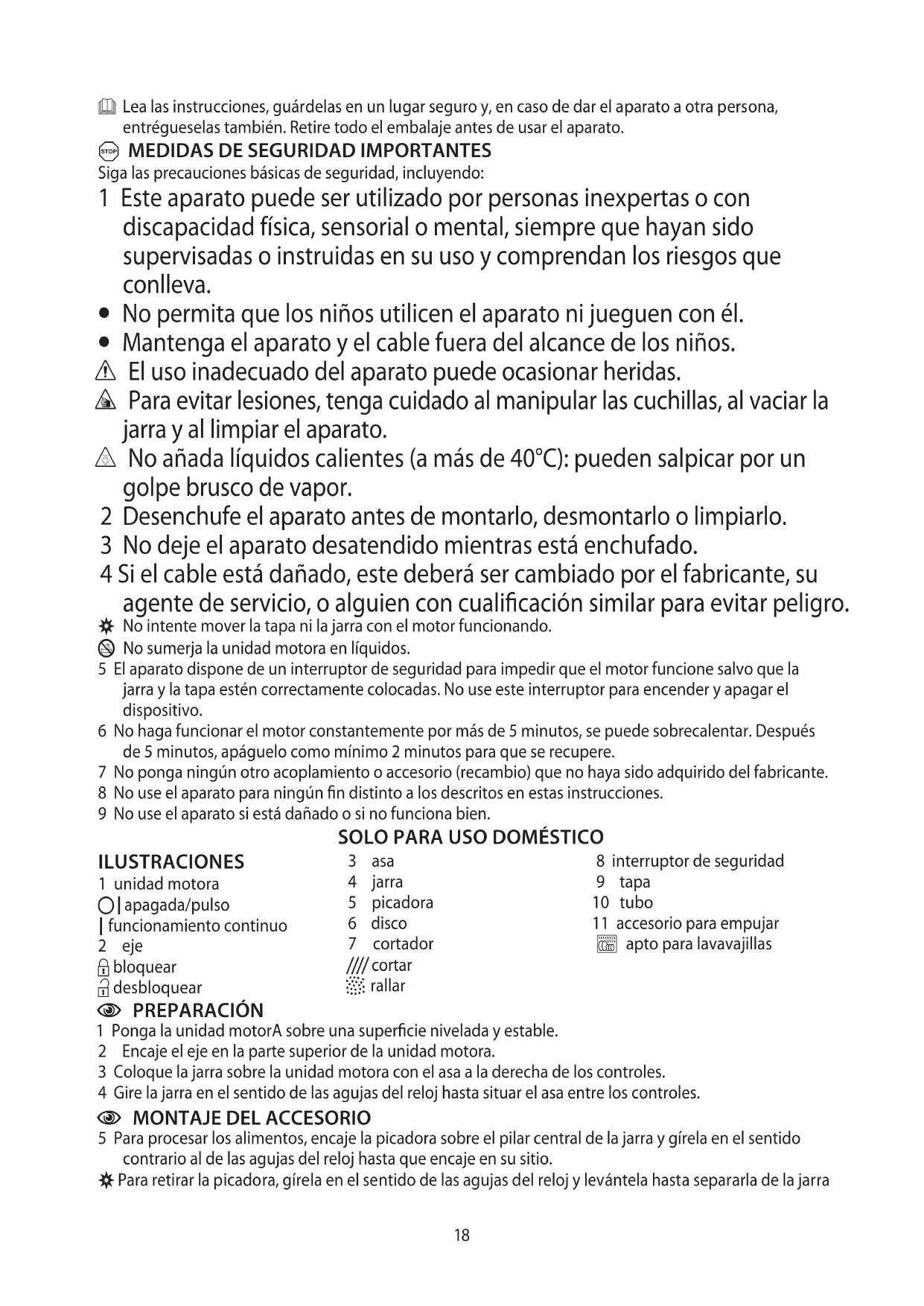 23 No utilice los dedos o cubiertos para empujar los alimentos a través del tubo, utilice sólo el accesorio