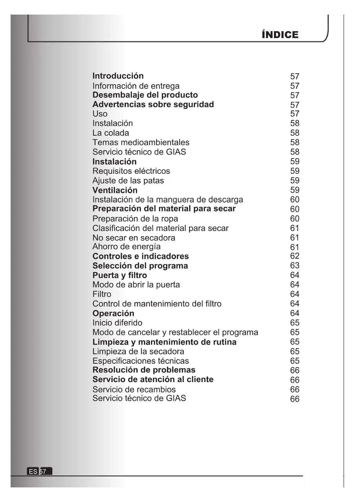 ES 58ADVERTENCIAS SOBRE SEGURIDAD Este electrodoméstico está marcado