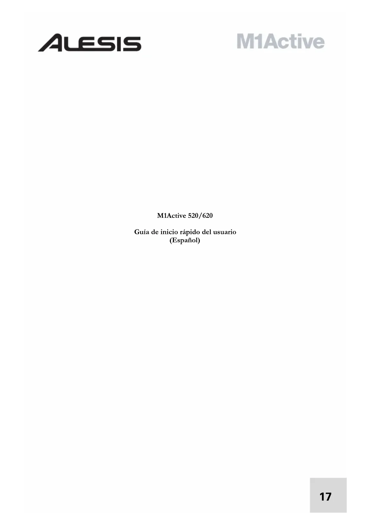 M1Active 520/620 Guía de inicio rápido del usuario (Español)18 Introducción Gracias por elegir el monitor de estudio Alesis M1Active 520/620. Alesis se enorgullece de contar con una larga historia de fabricación de los monitores de estudio de alta performance más vendidos y la serie M1Active 520/620 está cimentada en todo lo que aprendimos de esta historia. Nuestra línea de altavoces M1Active (que incluye al M1Active 520 y a su “hermano mayor”, el M1Active 620) fue diseñada desde la base a fin de lograr el monitor de estudio perfecto. El diseño biamplificado, el crossover activo y la combinación woofer/tweeter cuidadosamente adaptada aseguran una reproducción perfectamente exacta y transparente de su música. Estos altavoces son como un “microscopio sonoro”, que le permitirá oír todos los matices de su mezcla y le ayudará a lograr mezclas mejores. Hemos hecho esta guía de inicio rápido lo más breve posible, pero léala detenidamente. Le enseñará cómo obtener lo mejor de sus monitores M1Active. Esperamos que sus nuevos M1Active 520/620s le brinden un excelente servicio por muchos años. Atentamente La Gente de Alesis19 Características principales Los monitores M1Active 520 ofrecen lo siguiente:
