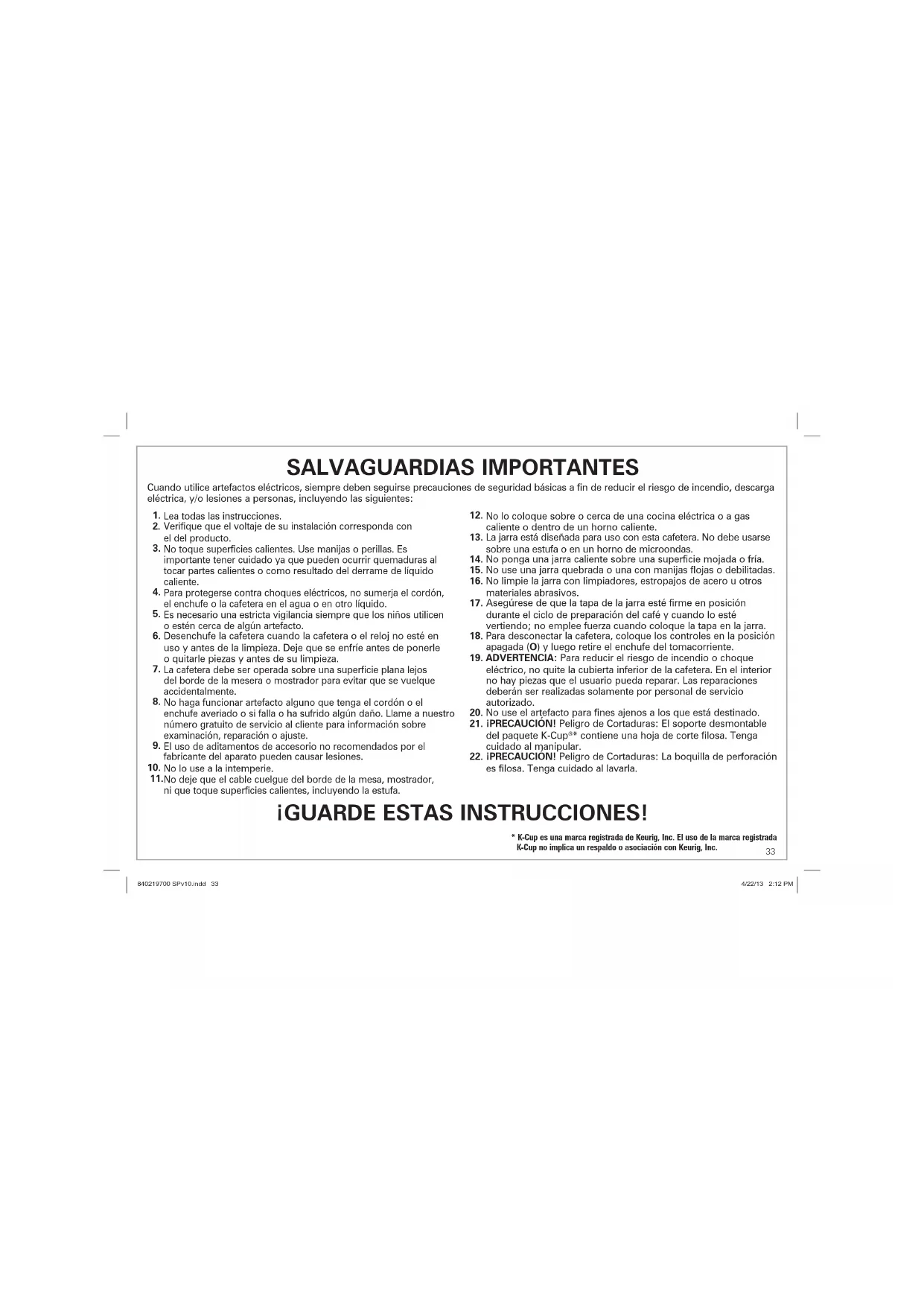 * K-Cup es una marca registrada de Keurig, Inc. El uso de la marca registrada