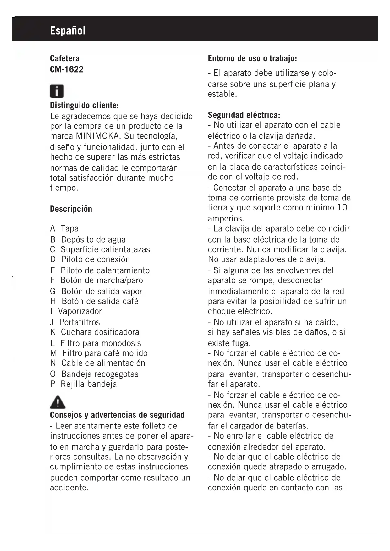Encuentra gratis el manual del aparato CM1622 Minimoka en formato PDF.