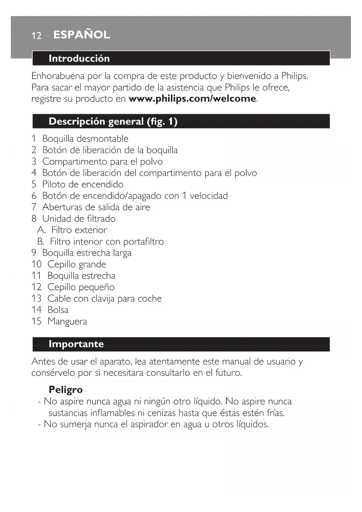 - No aspire nunca agua ni ningún otro líquido. No aspire nunca