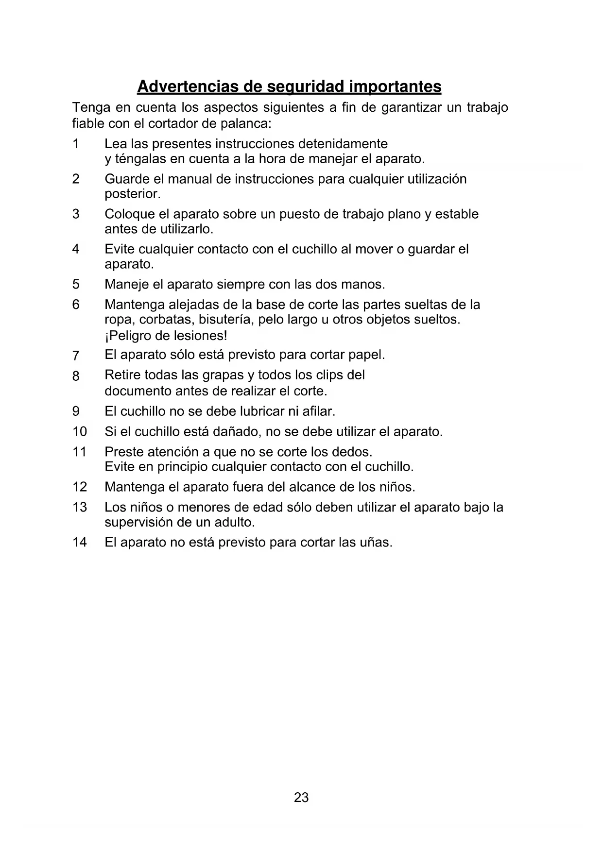 Advertencias de seguridad importantes 23