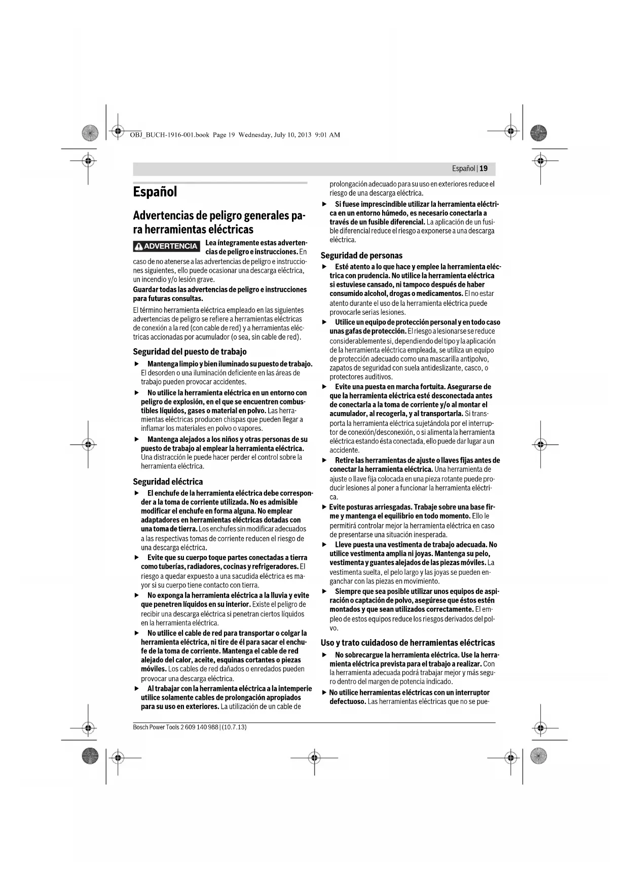 OBJ_BUCH-1916-001.book Page 18 Wednesday, July 10, 2013 9:01 AMEspañol | 19 Bosch Power Tools 2 609 140 988 | (10.7.13) Español