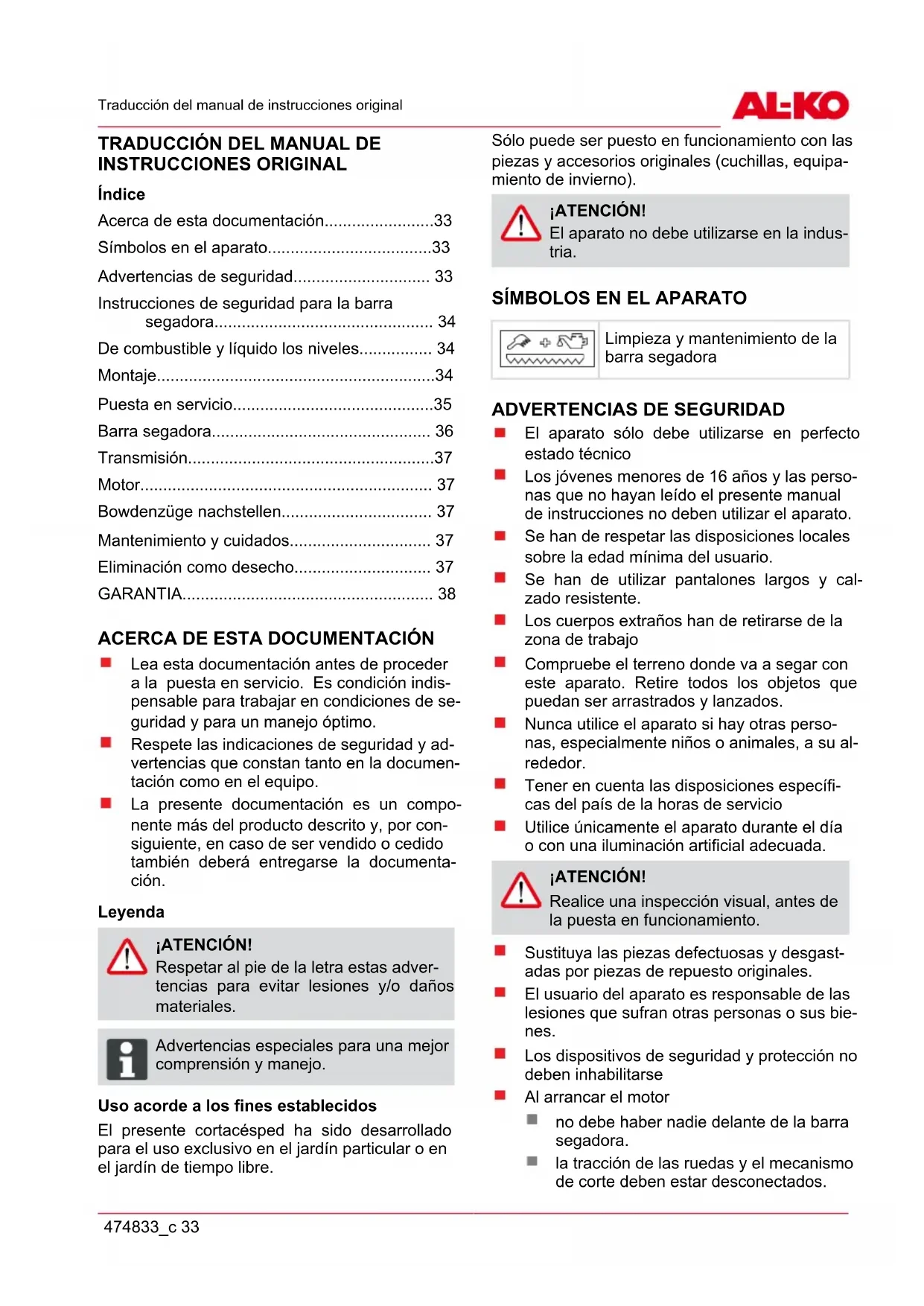 Descarga las instrucciones para tu Cortadora de césped en formato PDF gratis! Encuentra tus instrucciones BM 875 III - AL-KO y toma tu dispositivo electrónico nuevamente en la mano. En esta página están publicados todos los documentos necesarios para el uso de su dispositivo. BM 875 III de la marca AL-KO.