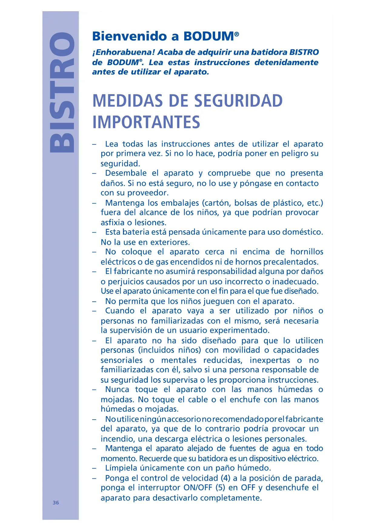 ¡Enhorabuena! Acaba de adquirir una batidora BISTRO de BODUM