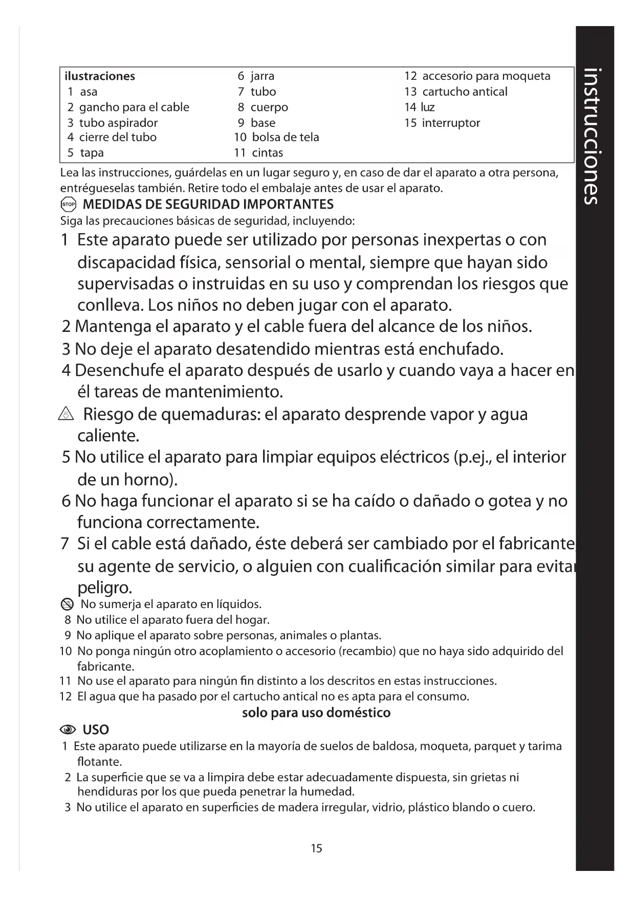 1 Este aparato puede utilizarse en la mayoría de suelos de baldosa, moqueta, parquet y tarima