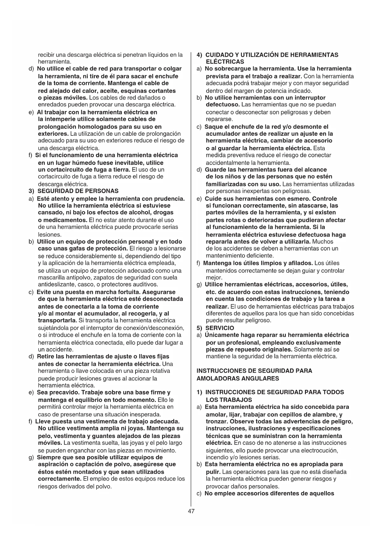 INSTRUCCIONES DE SEGURIDAD PARA AMOLADORAS ANGULARES