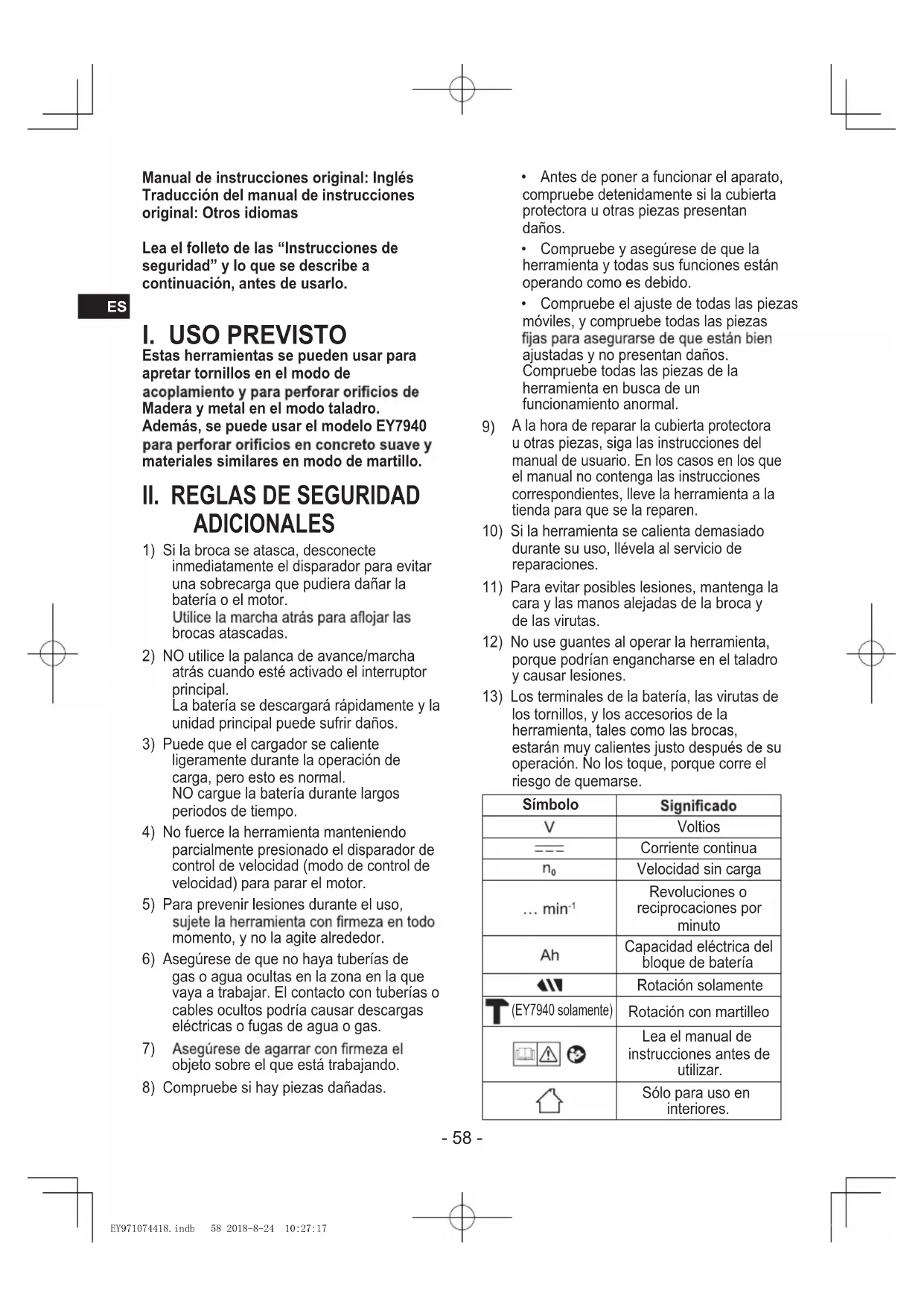 VI. ACCESORIOS Utilice sólo brocas adecuadas al tamaño del portabrocas. EY971074418.indb 65 2018-8-24 10:27:19- 66 -
