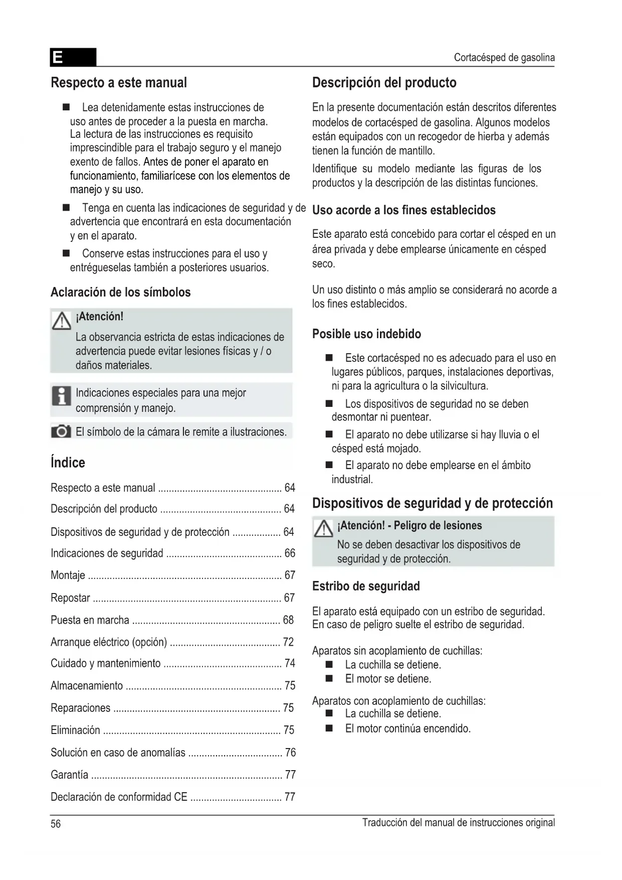 4 Estribo de seguridad 12 Manual de instrucciones