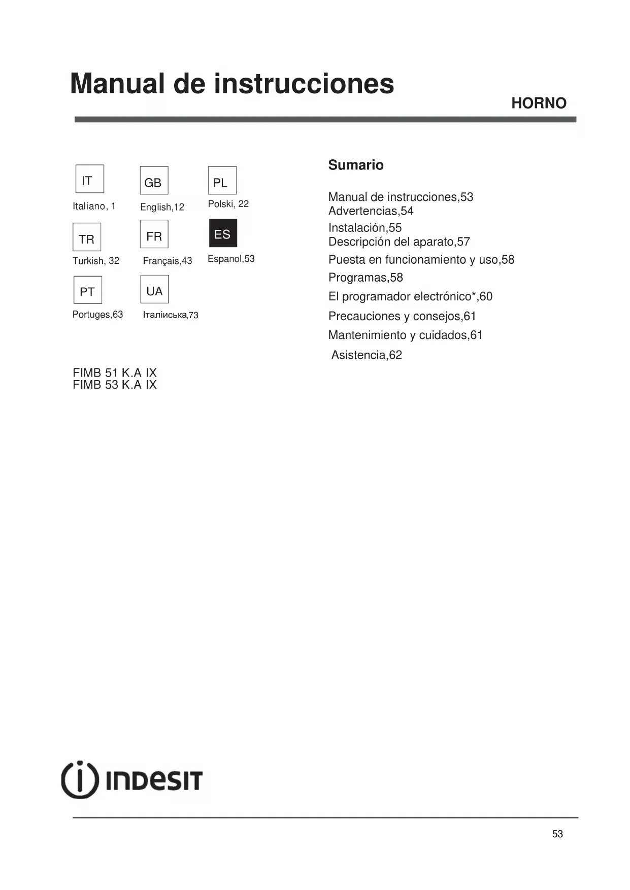 MANUAL DE USUARIO FIMB 51K.A IX (PL) INDESIT
