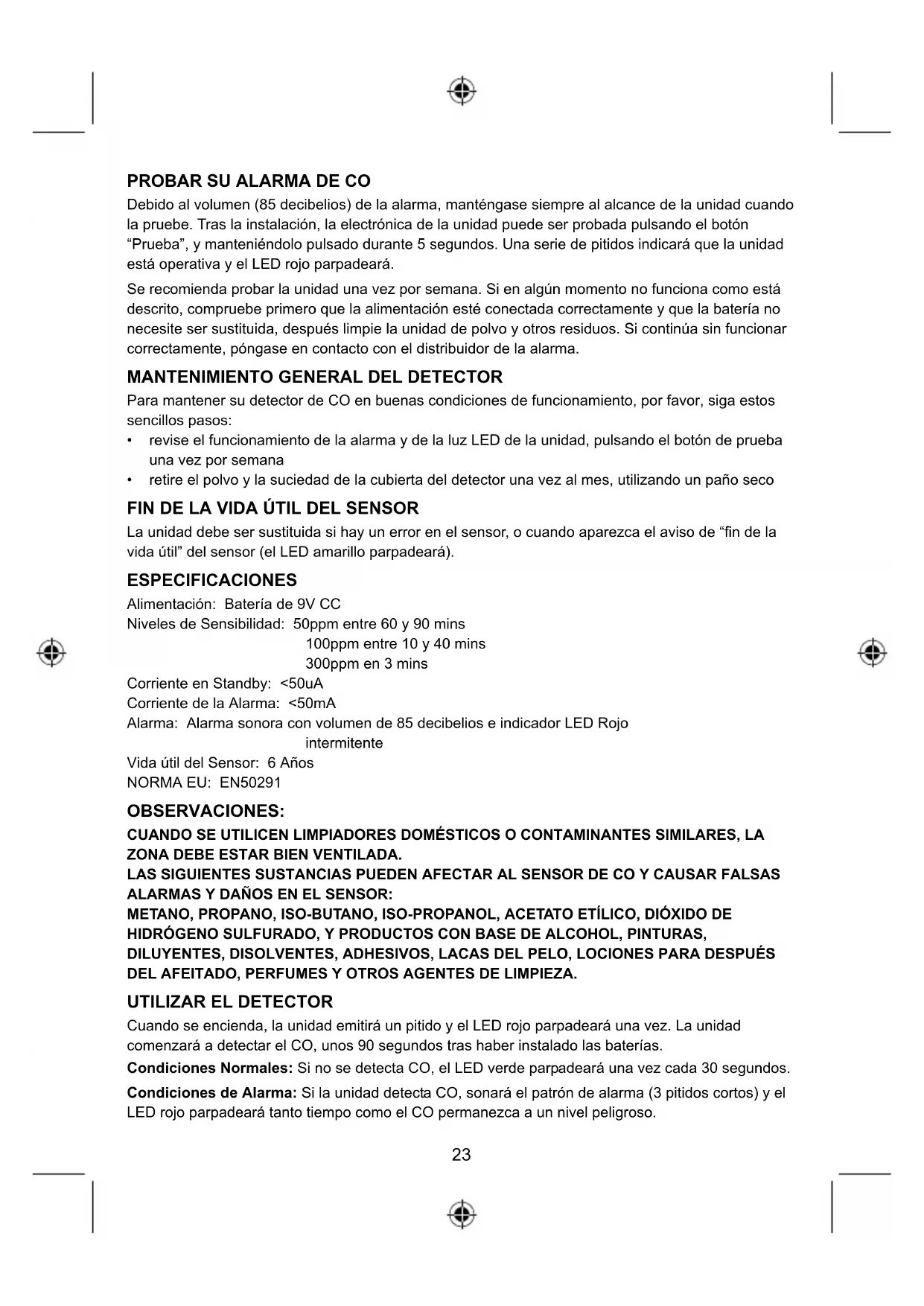 MANTENIMIENTO GENERAL DEL DETECTOR Para mantener su detector de CO en buenas condiciones de funcionamiento, por favor, siga estos