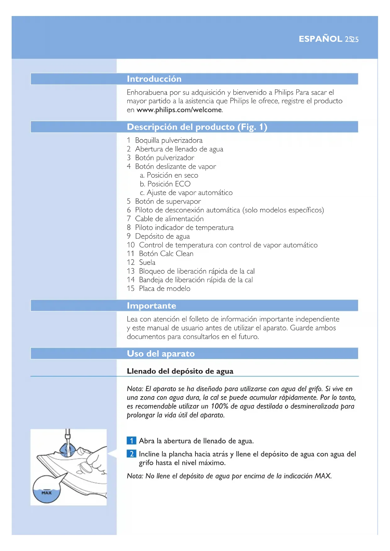 suela mientras plancha, utilice esta función con mayor frecuencia.