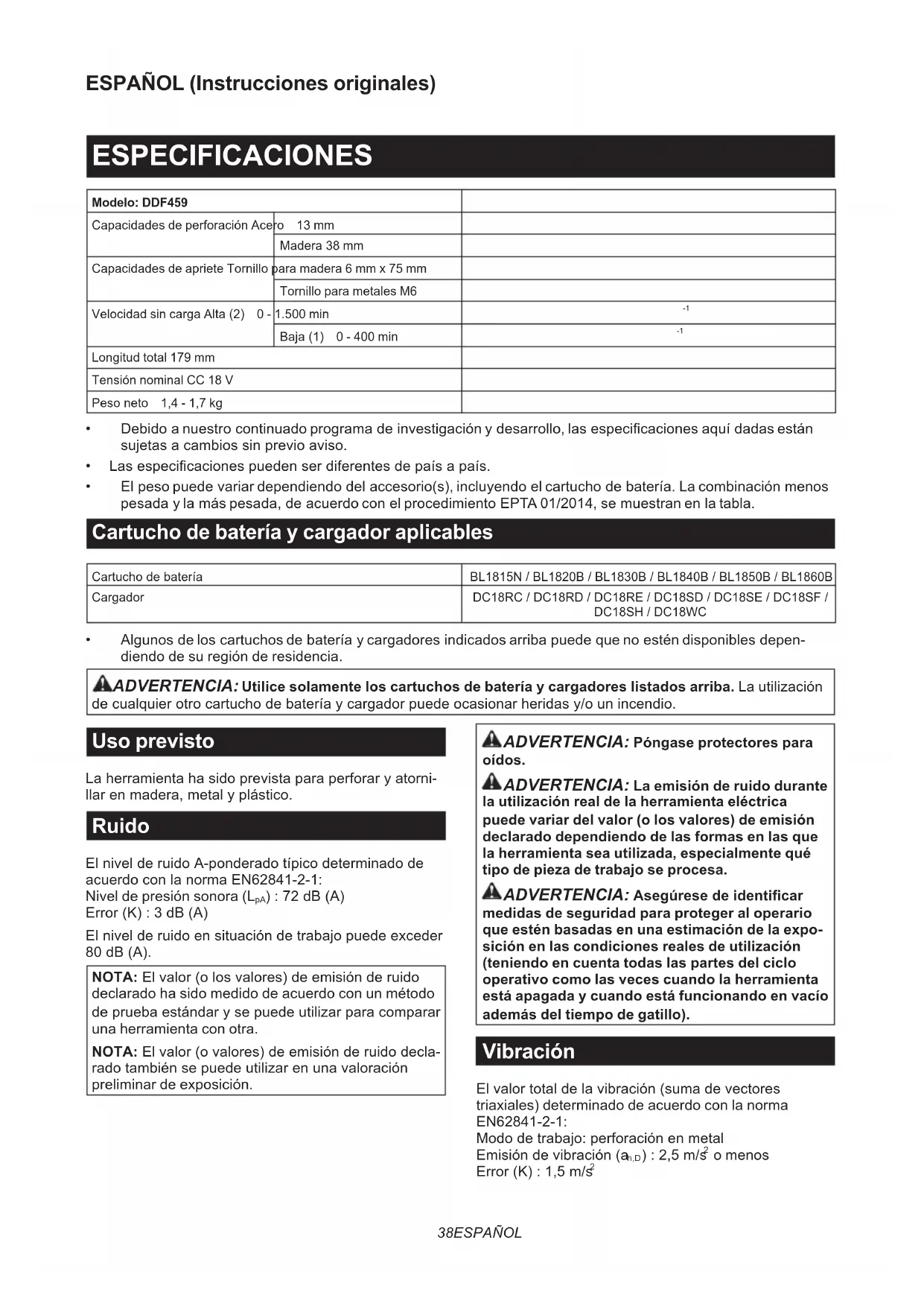 MANUAL DE USUARIO DDF459 MAKITA