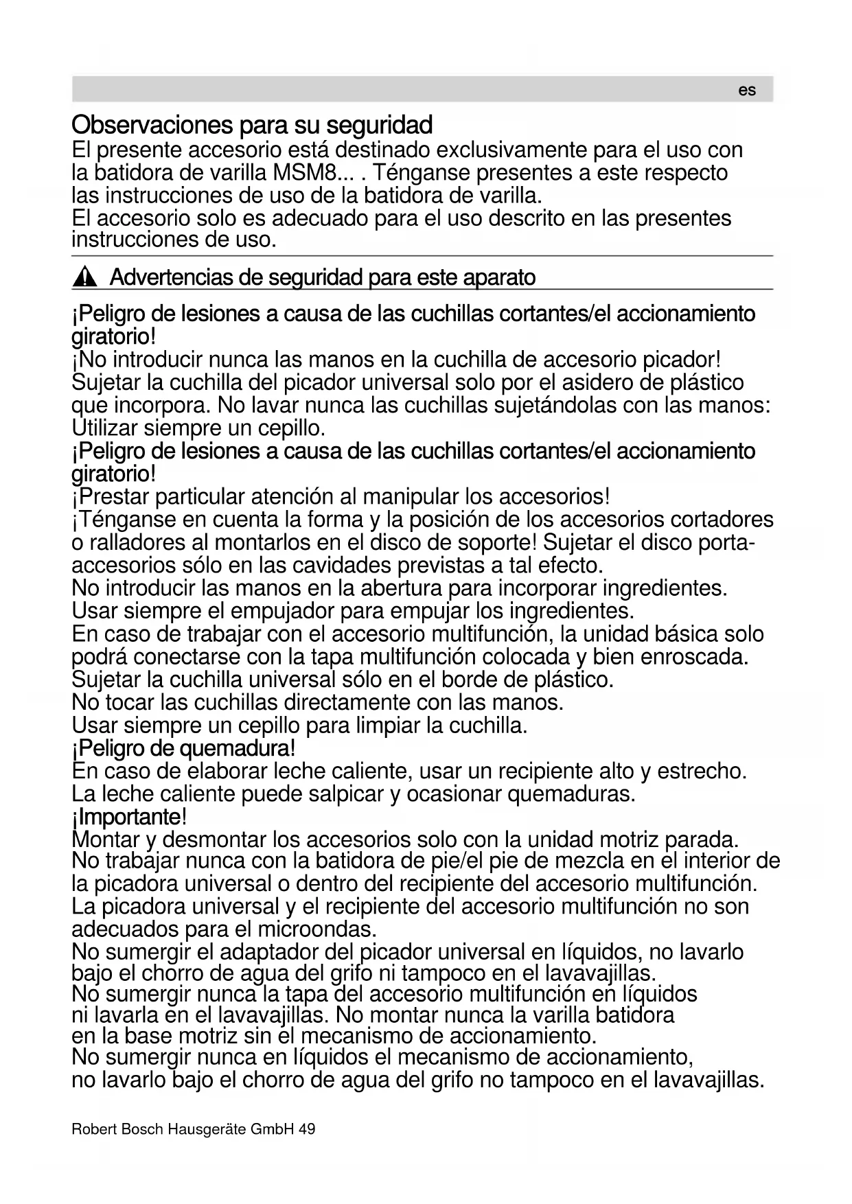 [es] Instrucciones de uso Accesorios (Batidora de varilla) 49