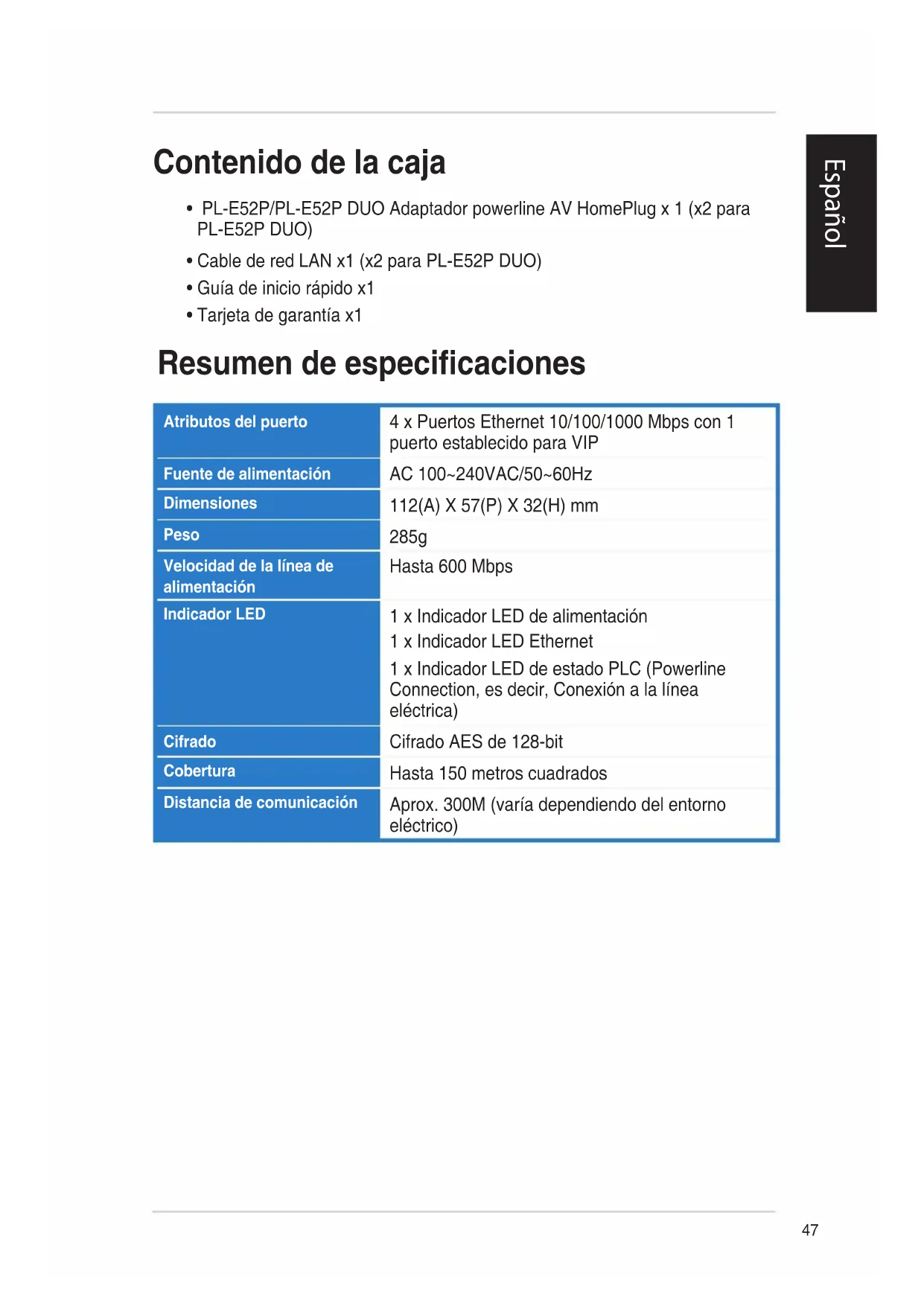 PLE52P Duo - Adaptador de línea eléctrica ASUS - Manual de uso y guía de instrucciones gratis