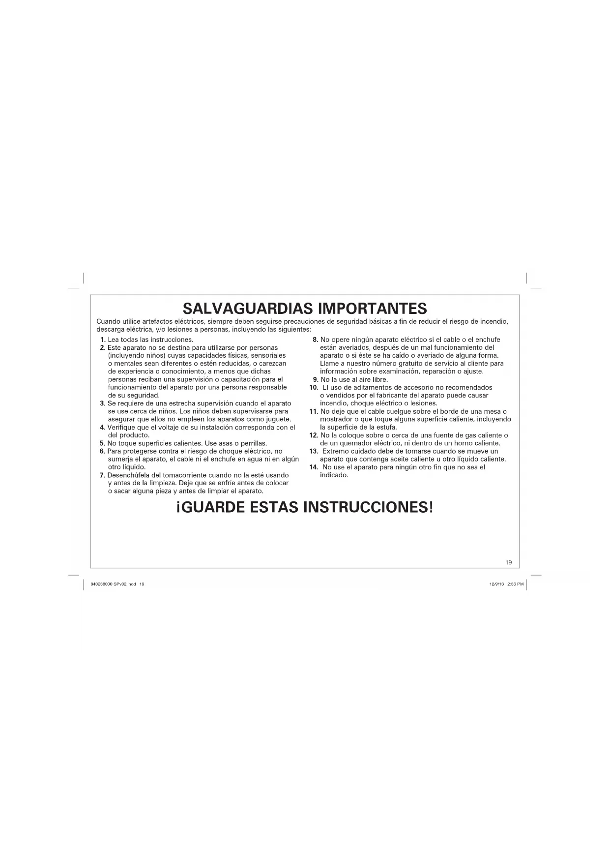 ¡GUARDE ESTAS INSTRUCCIONES!