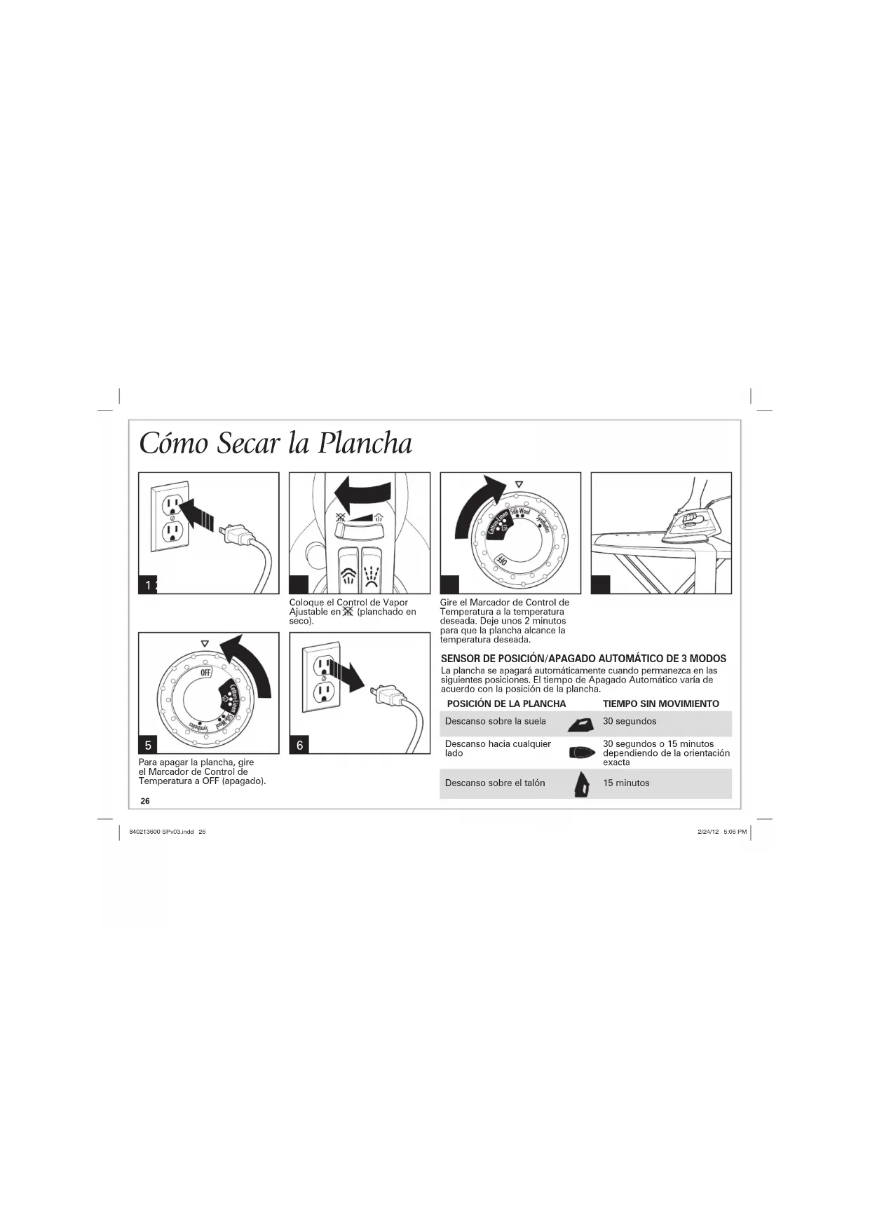SENSOR DE POSICIÓN/APAGADO AUTOMÁTICO DE 3 MODOS La plancha se apagará automáticamente cuando permanezca en las