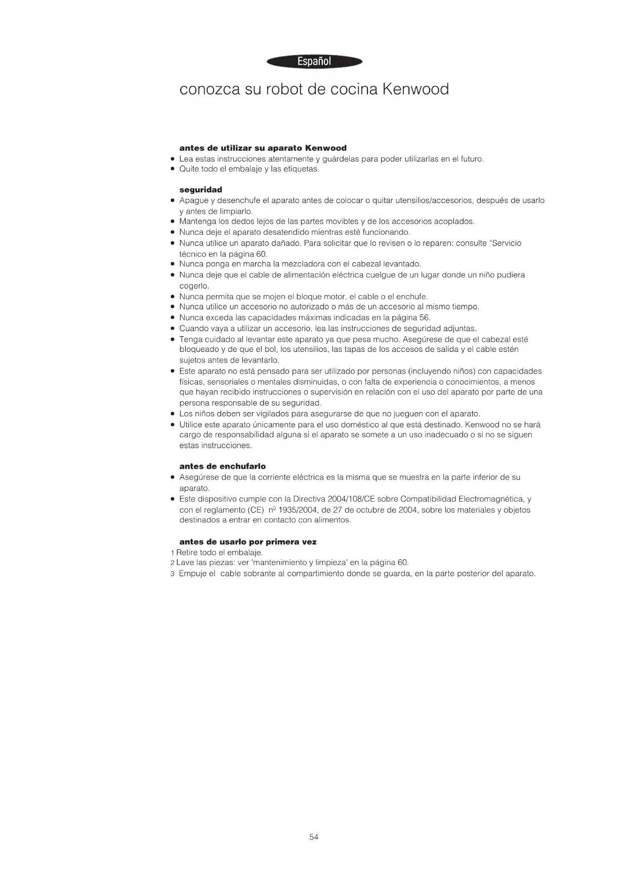 Utilice este aparato únicamente para el uso doméstico al que está destinado. Kenwood no se hará
