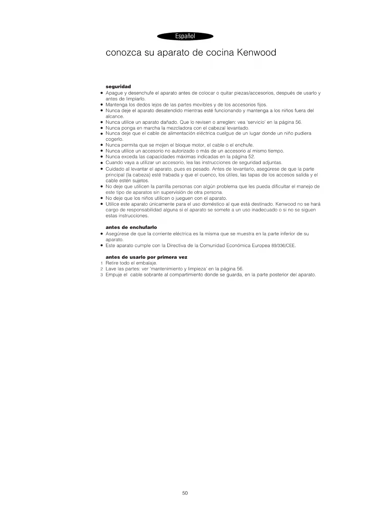 Utilice este aparato únicamente para el uso doméstico al que está destinado. Kenwood no se hará