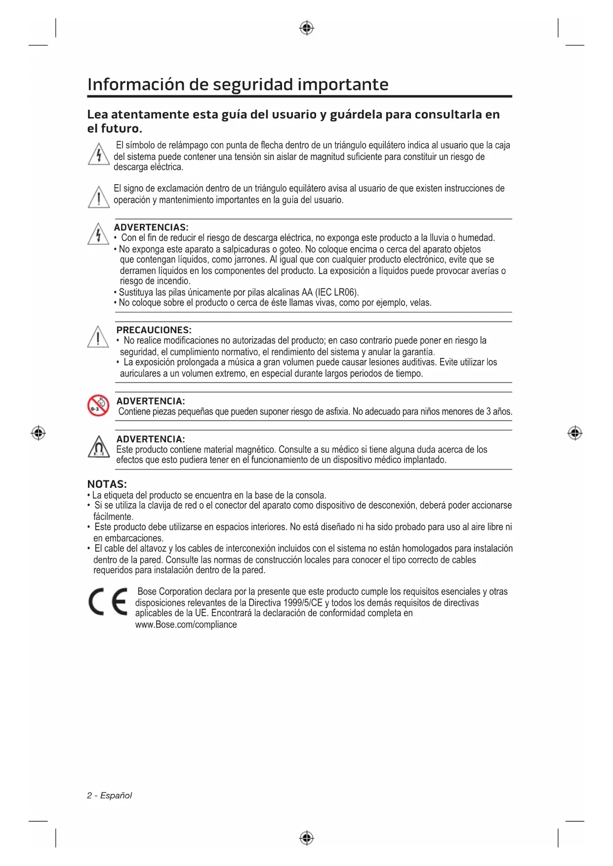 Bose Corporation declara por la presente que este producto cumple los requisitos esenciales y otras