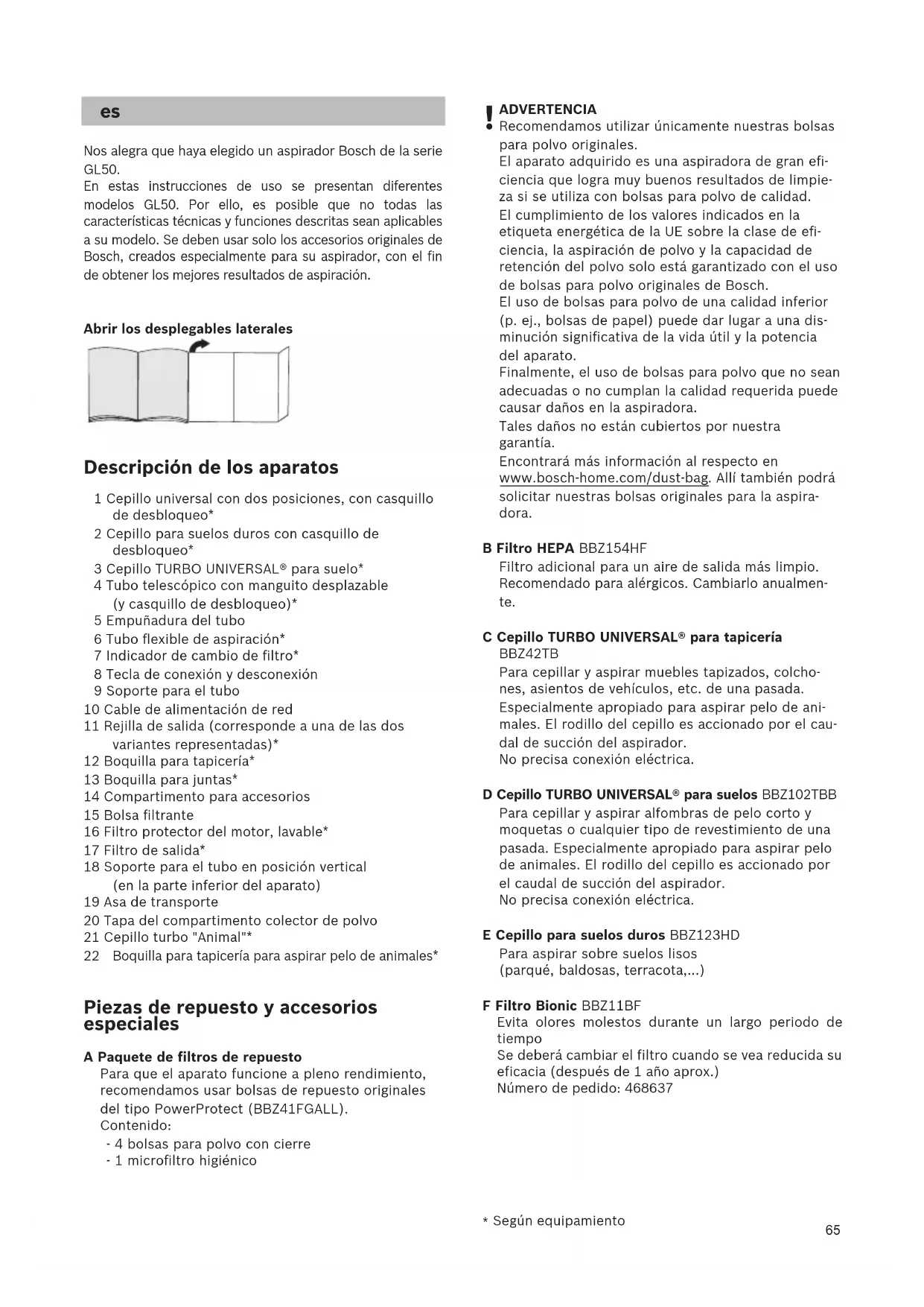 BSGL5310 - Aspiradora BOSCH - Manual de uso y guía de instrucciones gratis