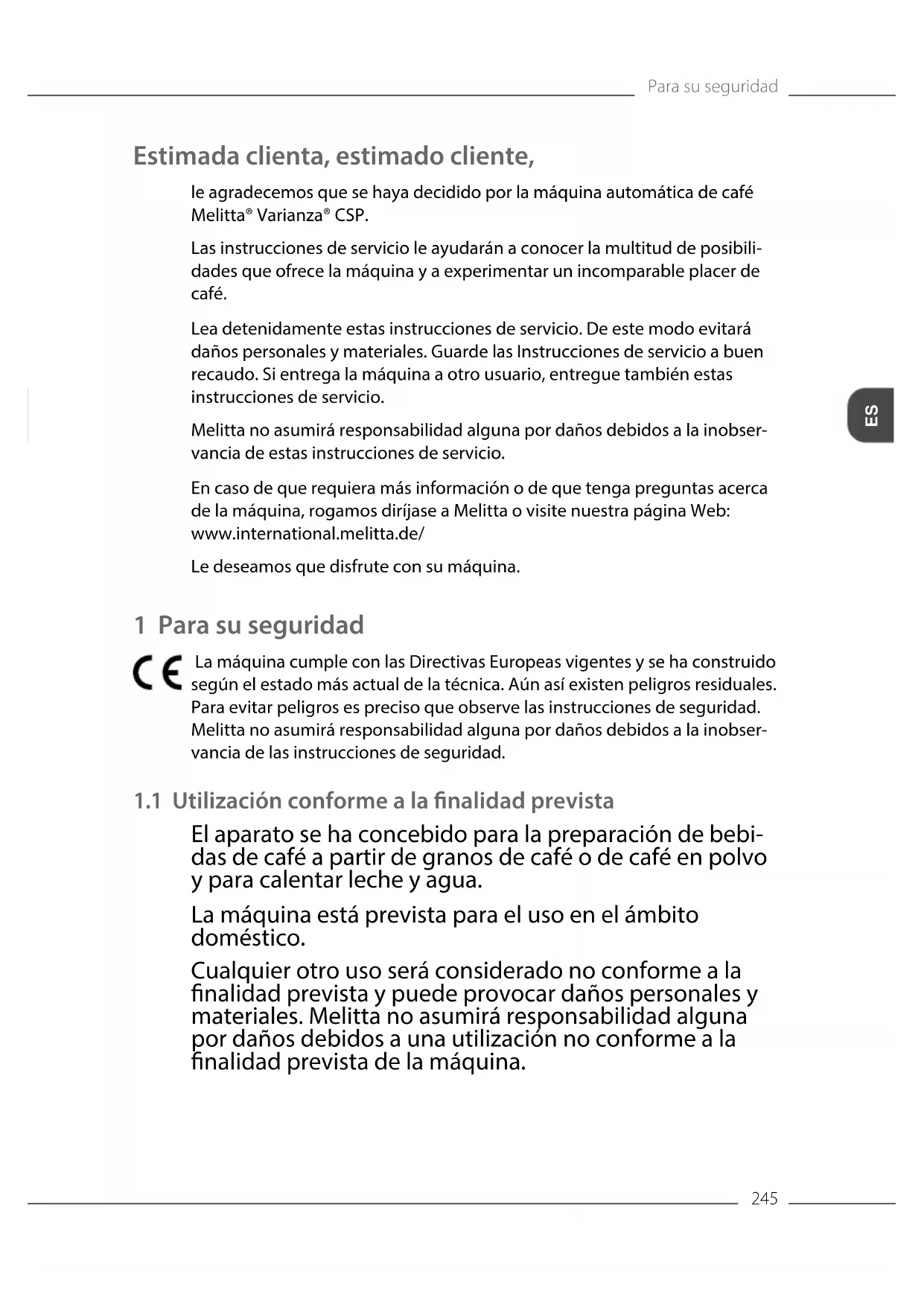 MANUAL DE USUARIO Caffeo Varianza CSP MELITTA