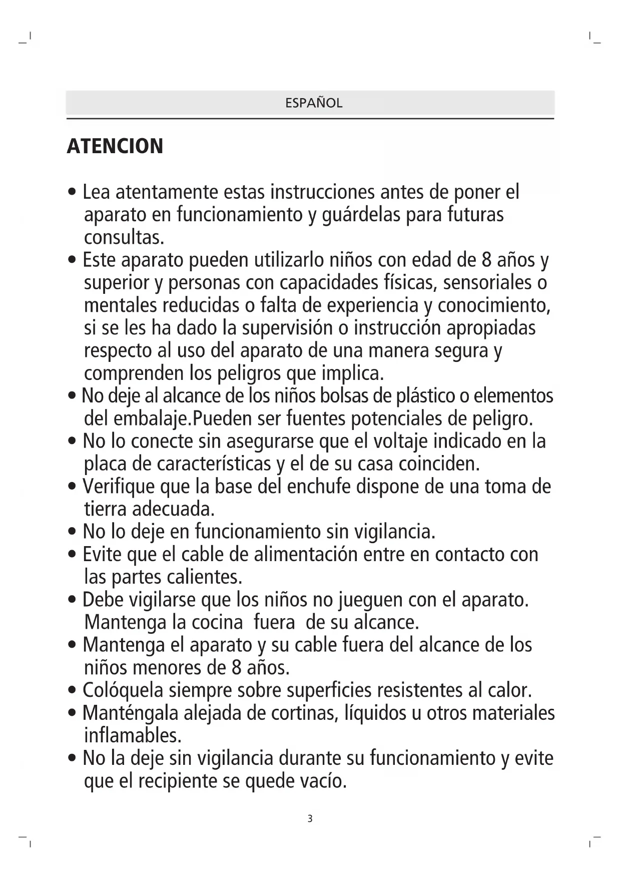 - Mantenga el aparato y su cable fuera del alcance de los niños menores de 8 años.