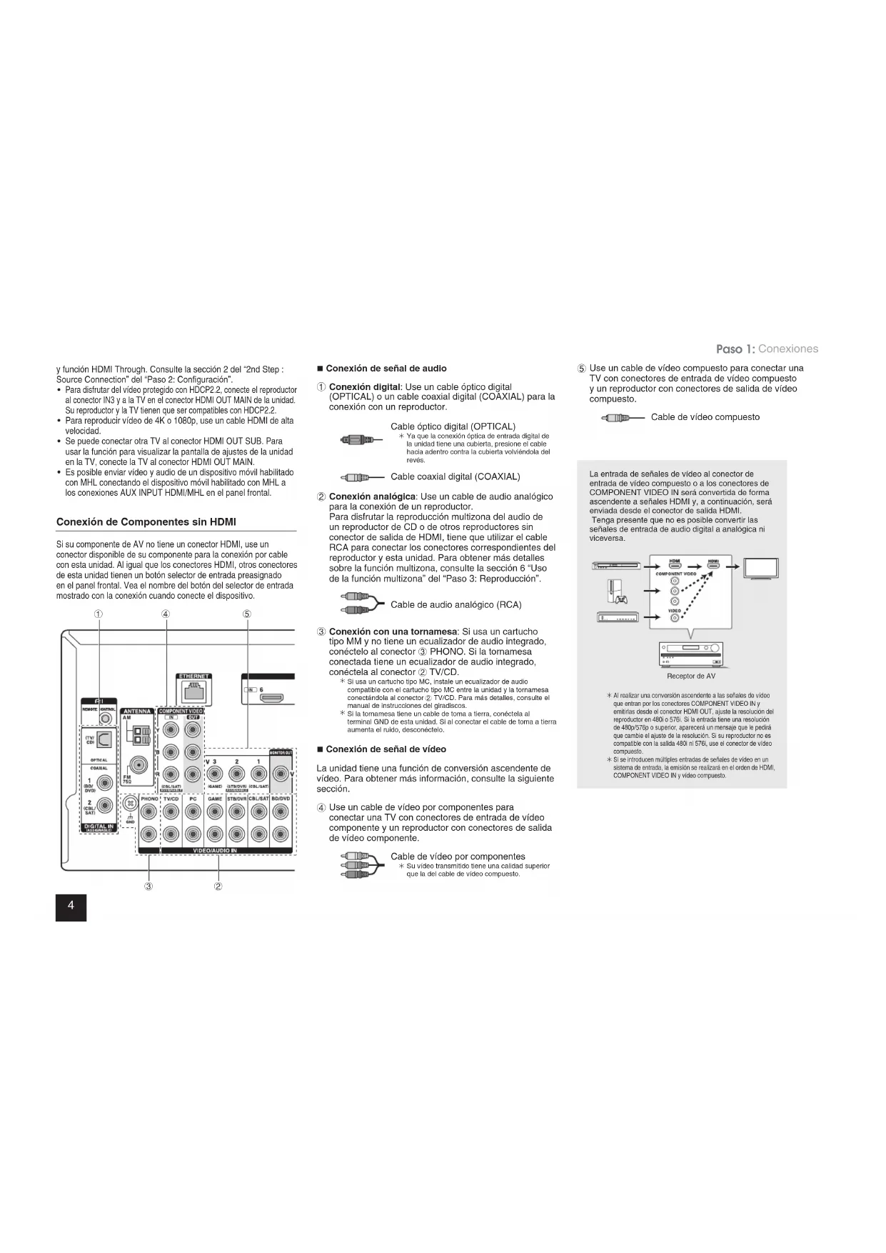 Conexión de Componentes sin HDMI Si su componente de AV no tiene un conector HDMI, use un