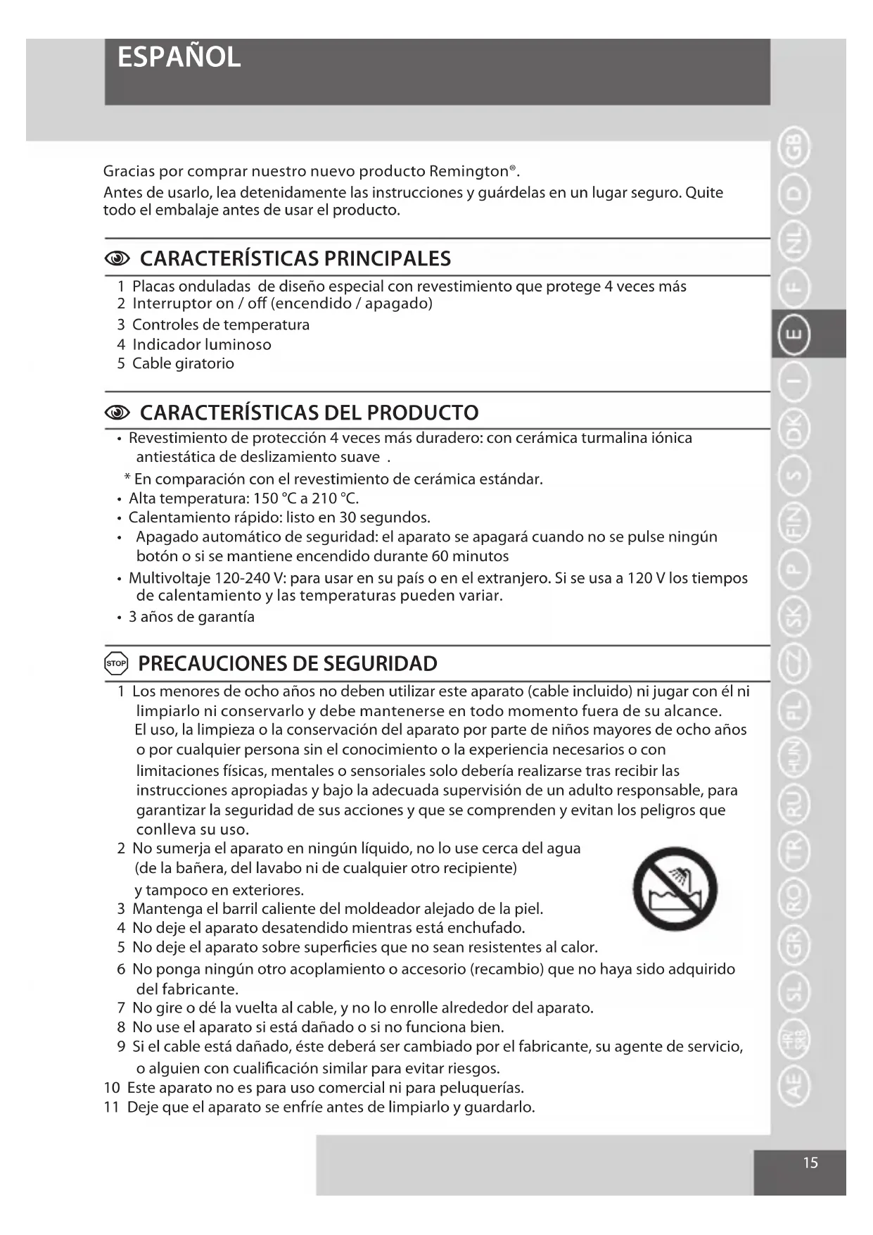 ESPAÑOL Gracias por comprar nuestro nuevo producto Remington®.