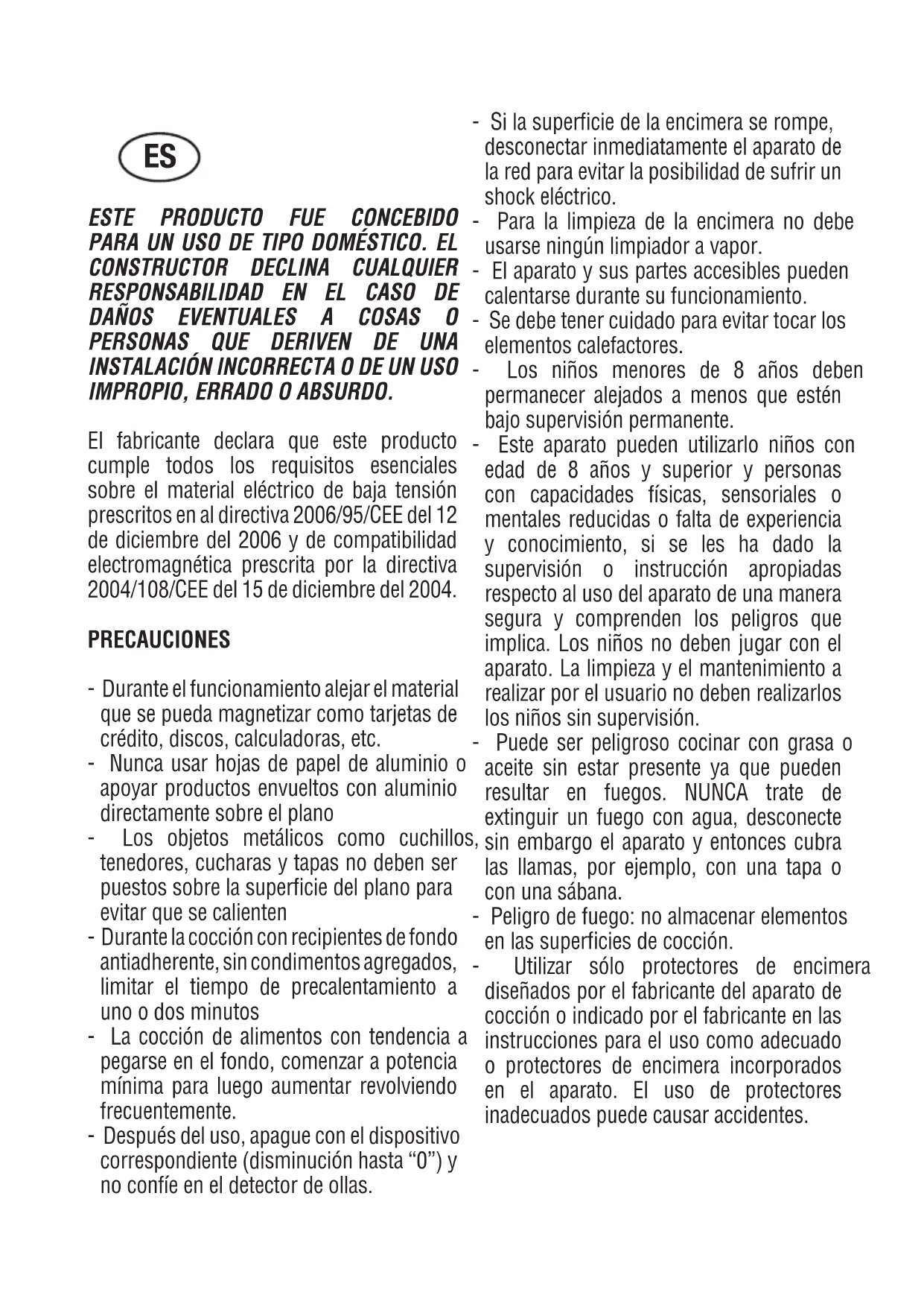 I 603 B, I 604 B/A, I 604 B, I 704, I 753 BKESTE PRODUCTO FUE CONCEBIDO PARA UN USO DE TIPO DOMÉSTICO. EL CONSTRUCTOR DECLINA CUALQUIER RESPONSABILIDAD EN EL CASO DE DAÑOS EVENTUALES A COSAS O PERSONAS QUE DERIVEN DE UNA INSTALACIÓN INCORRECTA O DE UN USO IMPROPIO, ERRADO O ABSURDO.