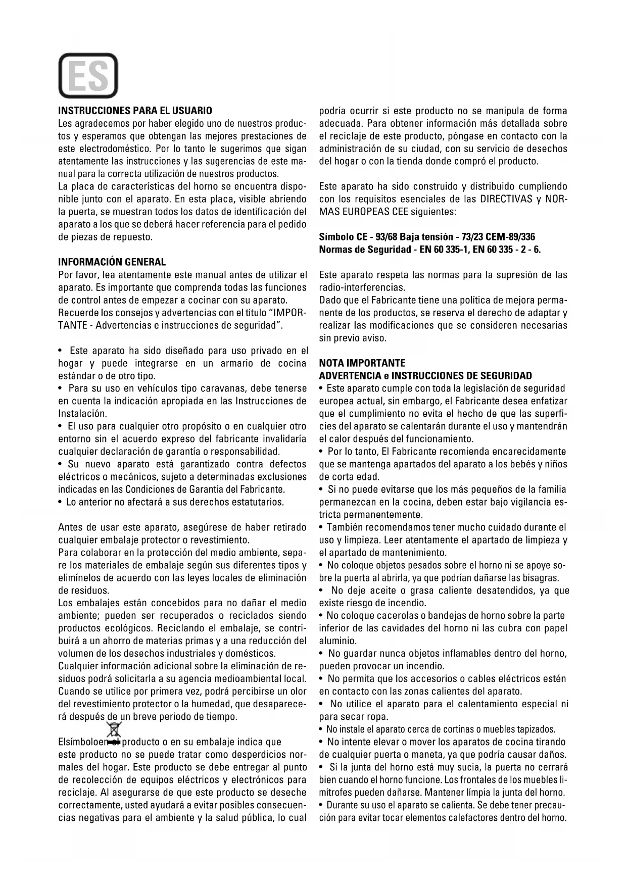 ES RU Instrucciones de uso y mantenimiento para hornos de encastre