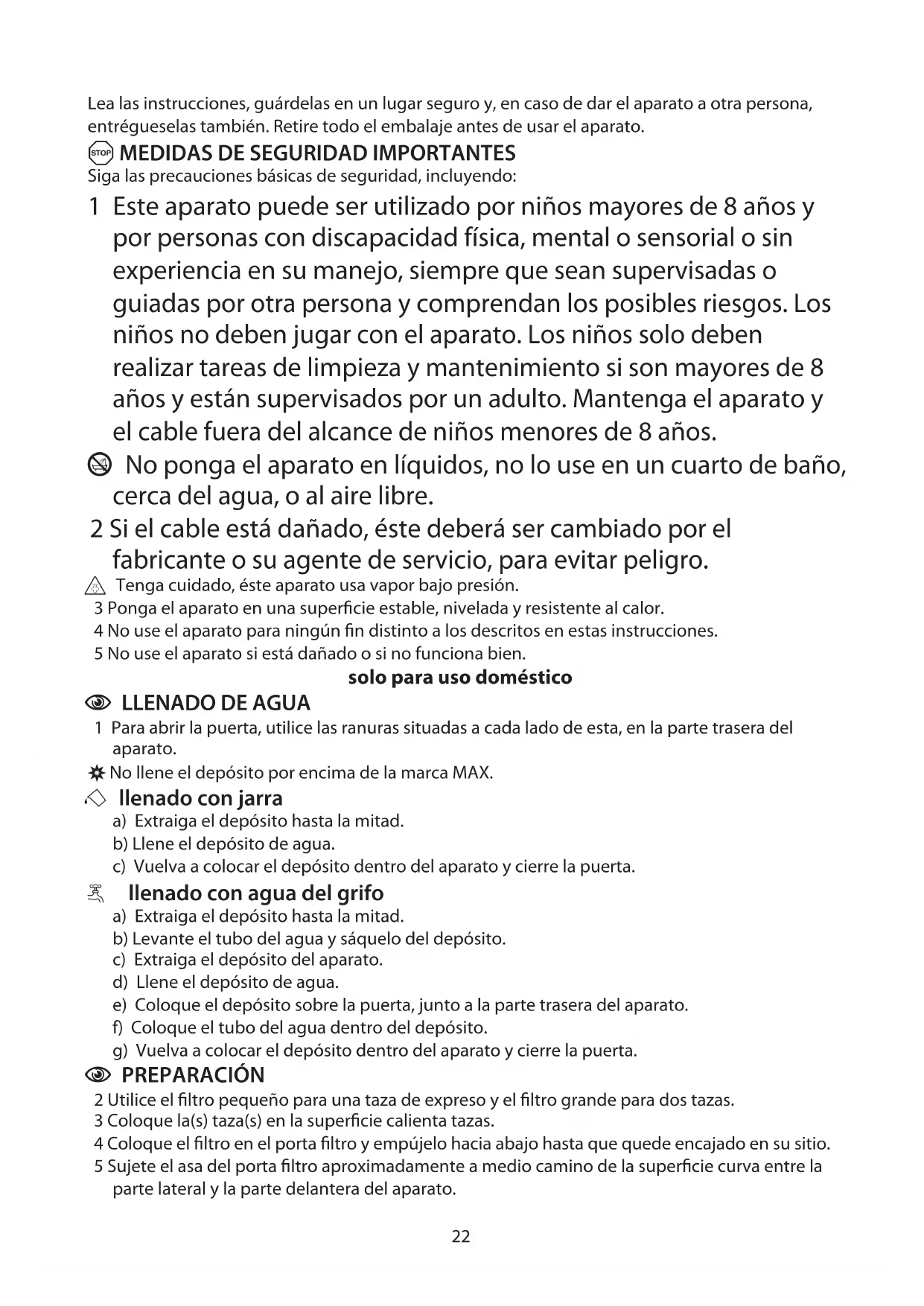 o Tenga cuidado, éste aparato usa vapor bajo presión.
