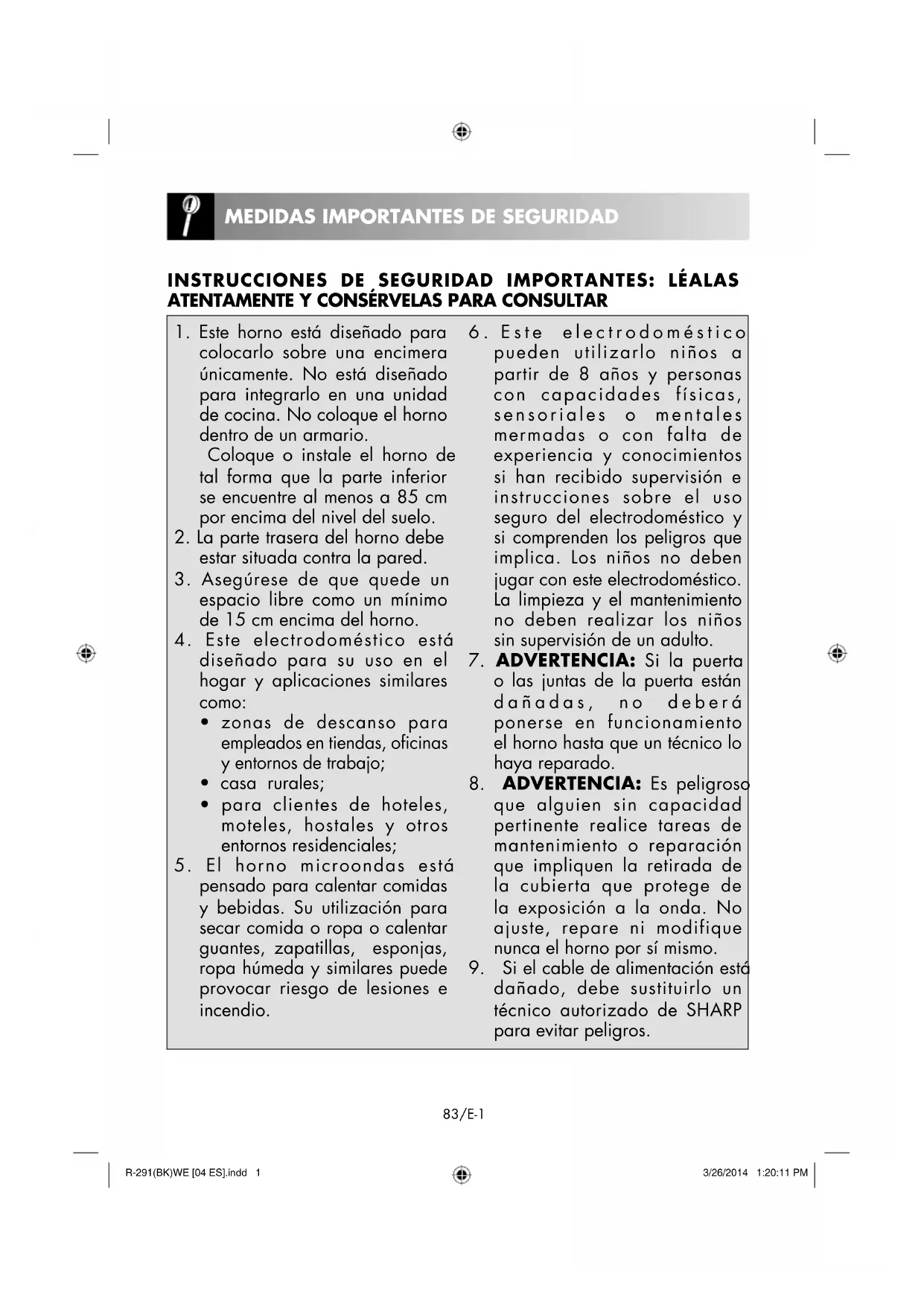 MEDIDAS IMPORTANTES DE SEGURIDAD E-1-4