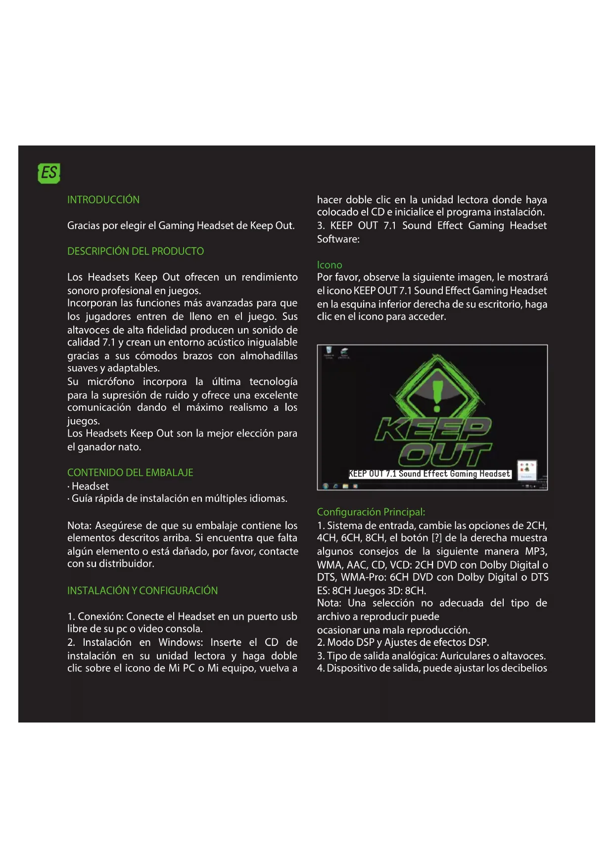 KEEP OUT 7.1 Sound Effect Gaming Headset INTRODUCCIÓN Gracias por elegir el Gaming Headset de Keep Out.