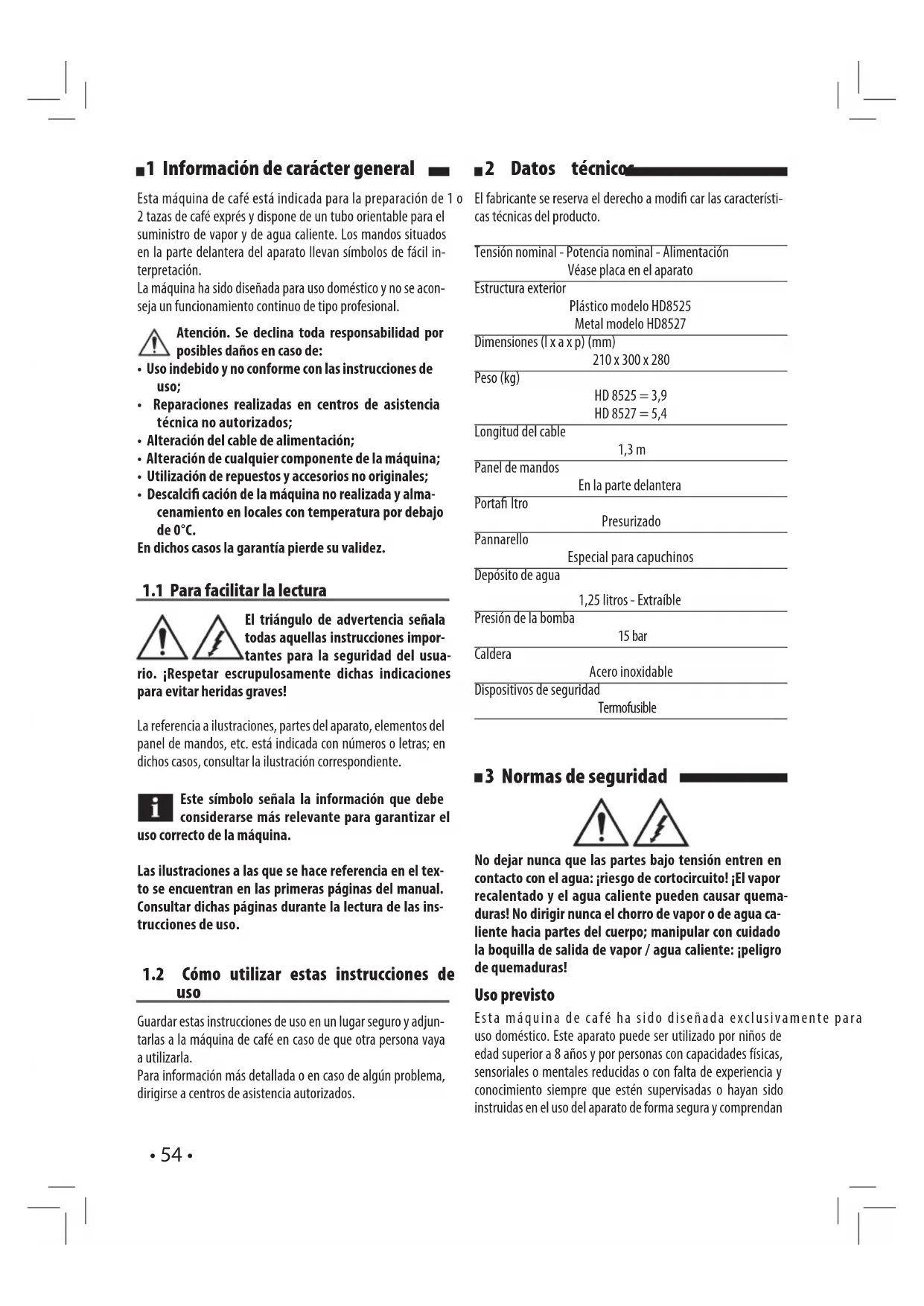 Encuentra gratis el manual del aparato Saeco Estrosa HD8525 PHILIPS en formato PDF.