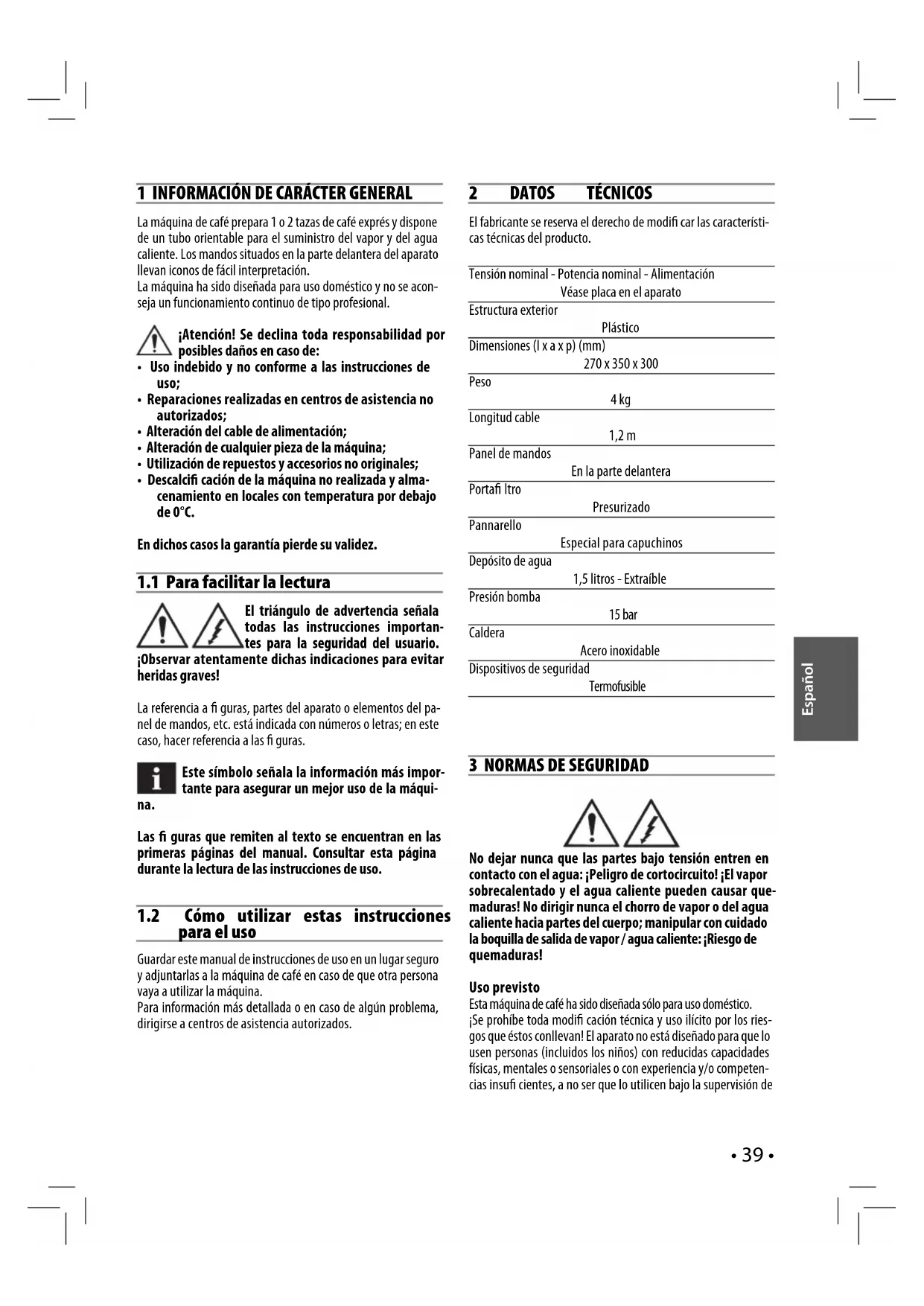 1 INFORMACIÓN DE CARÁCTER GENERAL La máquina de café prepara 1 o 2 tazas de café exprés y dispone