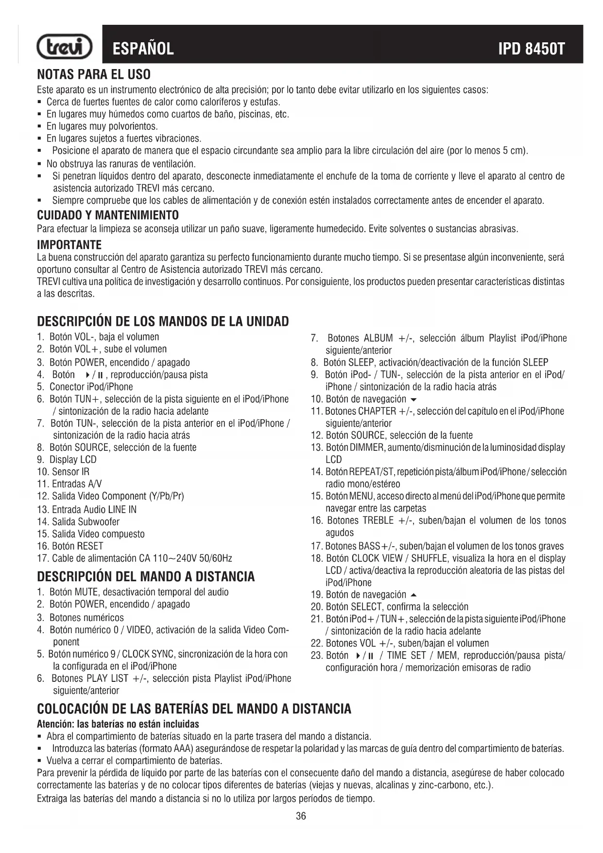 MANUAL DE USUARIO IPD 8450 T Trevi