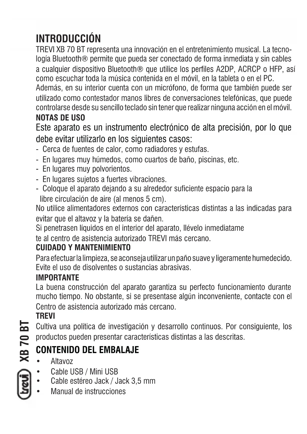 MANUAL DE USUARIO XB 70BT Trevi
