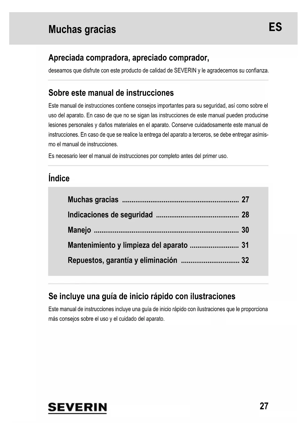 deseamos que disfrute con este producto de calidad de SEVERIN y le agradecemos su confianza.