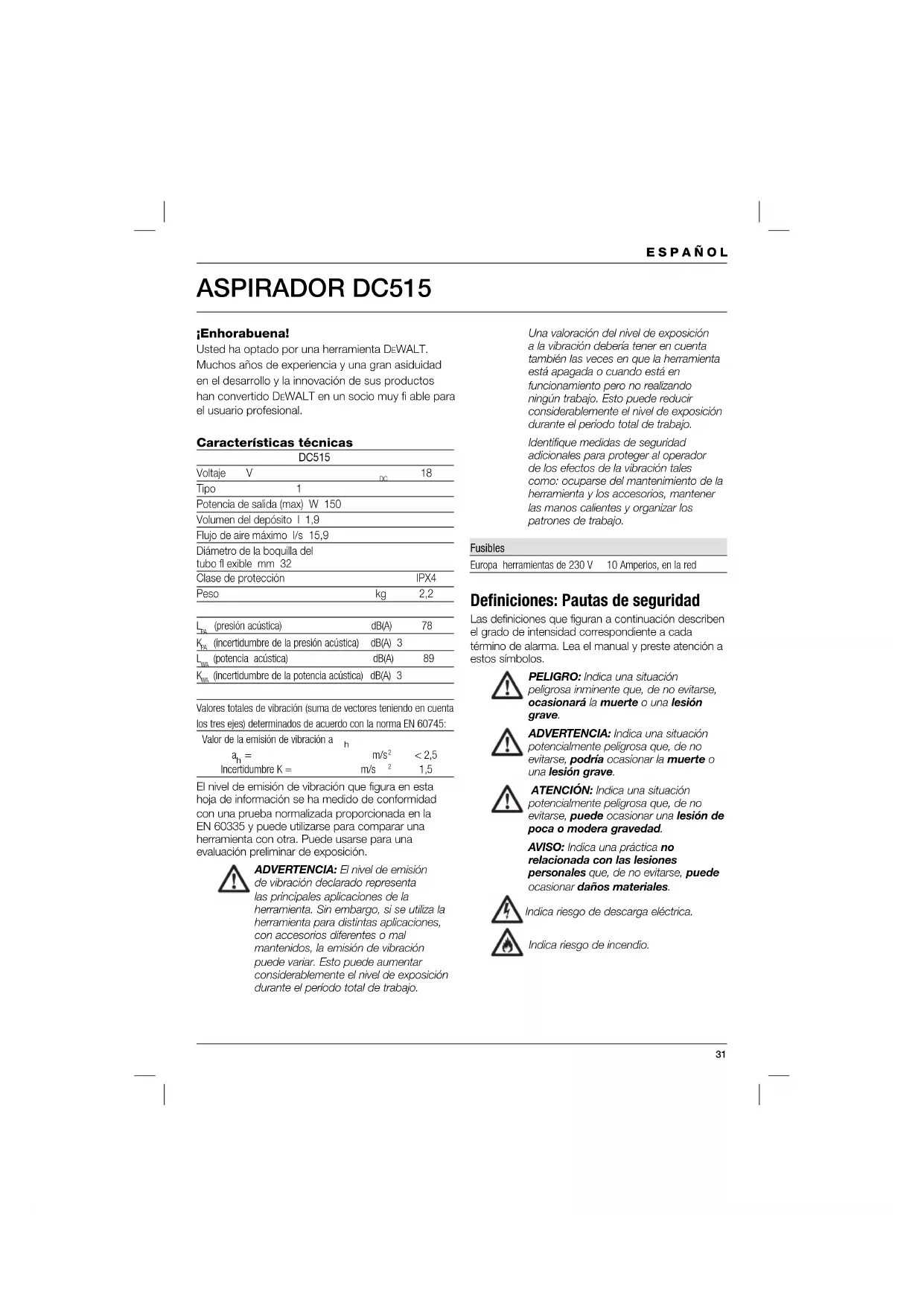 Descarga las instrucciones para tu Aspiradora en formato PDF gratis! Encuentra tus instrucciones DC515 - DEWALT y toma tu dispositivo electrónico nuevamente en la mano. En esta página están publicados todos los documentos necesarios para el uso de su dispositivo. DC515 de la marca DEWALT.