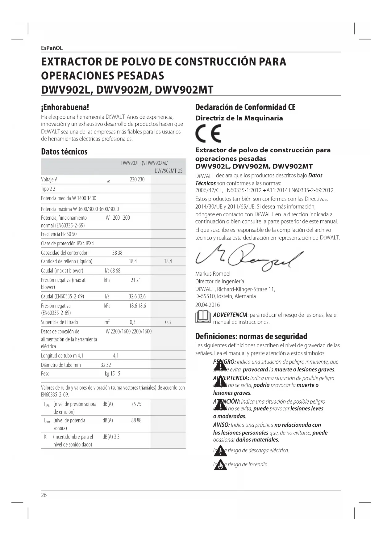 Encuentra gratis el manual del aparato DWV902L DEWALT en formato PDF.